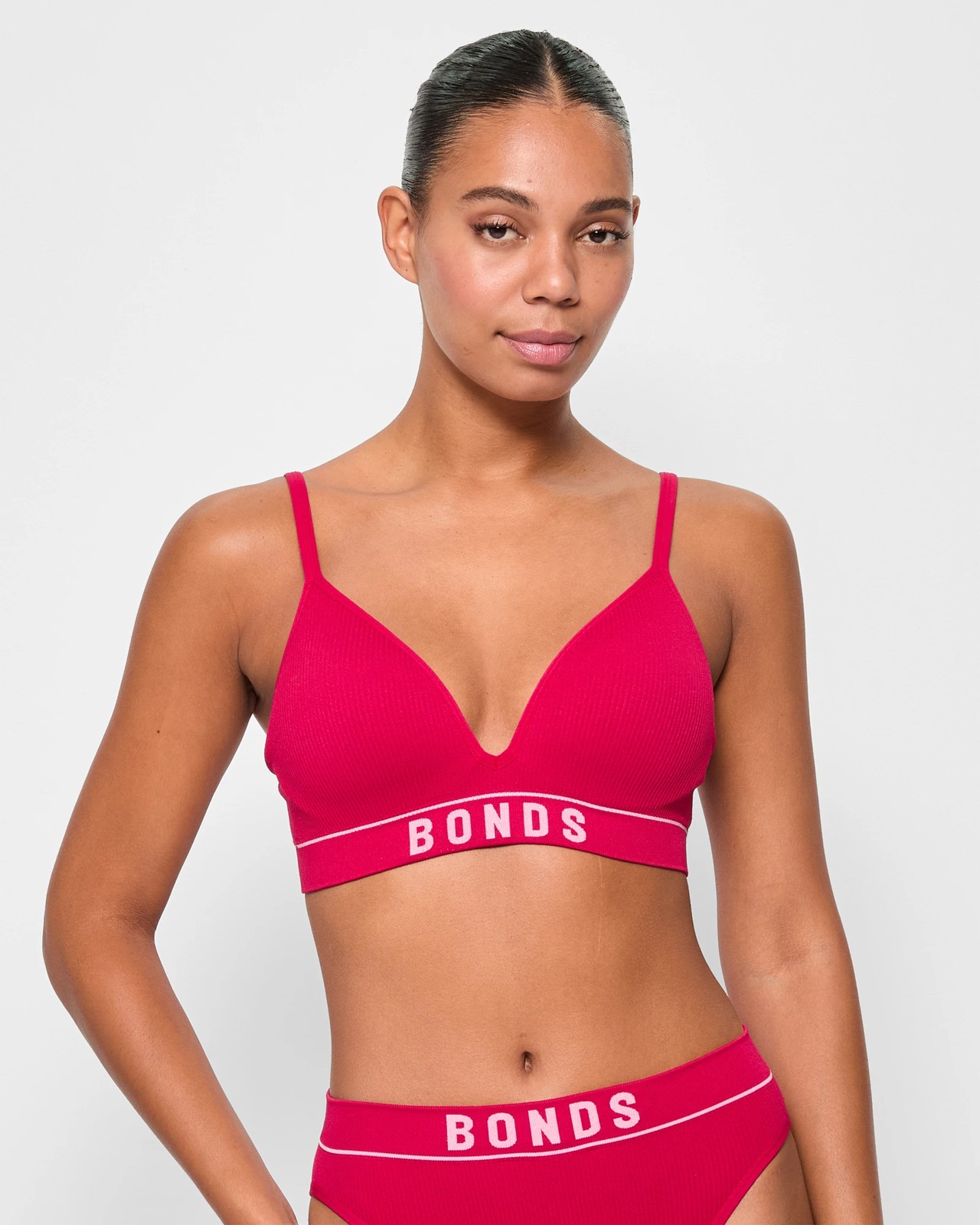 Step into vintage charm with the Retro Rib T-Shirt Crop Bra from Bonds. Designed from nylon and polyester blend, this crop bra offers comfort with its stretchy rib knit design. The deep v-front and thin shoulder straps enhance its stylish look, while the comfortable thick underband ensures it stays perfectly in place. Ideal for everyday wear, this wire-free bra features an embroidered Bonds logo on the underband for a touch, making your everyday moments special. Don't miss out – experience the blend where style meets comfort today!