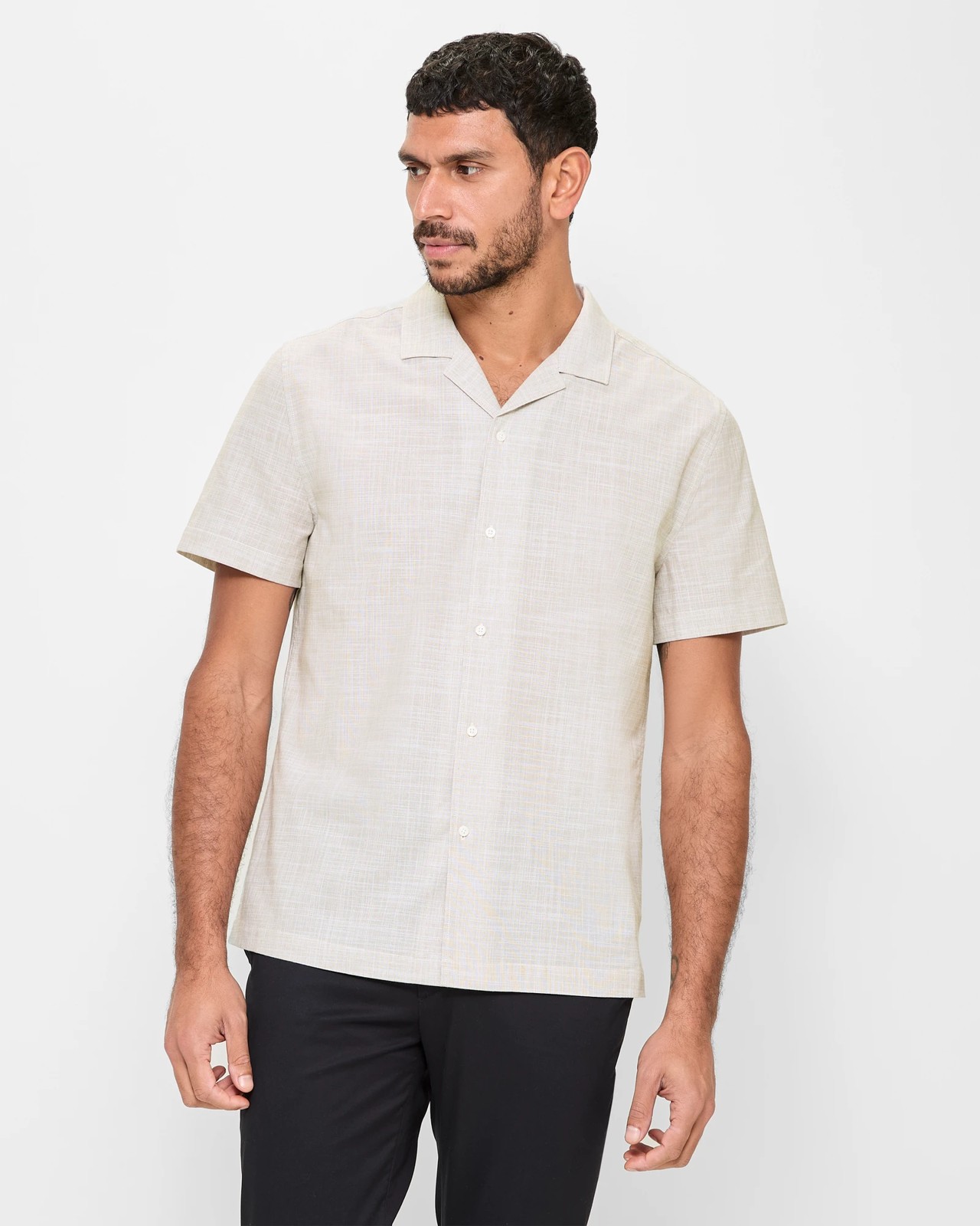 Discover the Preview Revere Utility Shirt, perfect for your everyday adventures. Made from lightweight and breathable cotton, this regular-fit shirt offers unparalleled comfort. Featuring a round collared neckline with small lapels and short sleeves, it ensures a timeless look. The button-through front and straight hemline add to its classic design, while small side seam splits and a back centre pleat provide extra movement. Add this versatile essential to your wardrobe - grab yours today!