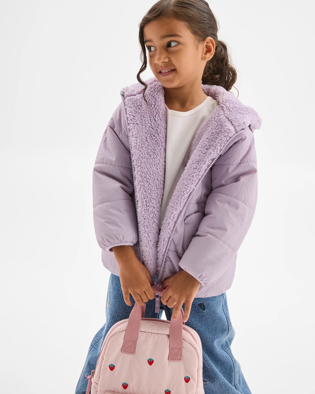 Brighten up chilly mornings with the Reversible Hooded Heart Pocket Puffer Jacket, expertly designed for younger girls who love a bit of versatility in their style. Featuring a clever reversible design, this adorable jacket gives your little one two fabulous ways to wear it, so she can mix things up to suit her day. The water-resistant outer layer helps keep showers at bay, while the soft teddy fleece lining wraps her in cosy comfort. Heart-shaped pockets add a delightful finish, perfect for treasures and tiny hands alike. With its zip-through front, snug hood, and regular fit, getting ready becomes a breeze. Give her a jacket that’s as full of personality as she is – let her step out in warmth, style, and confidence. Treat her to a jacket that makes every outing special!