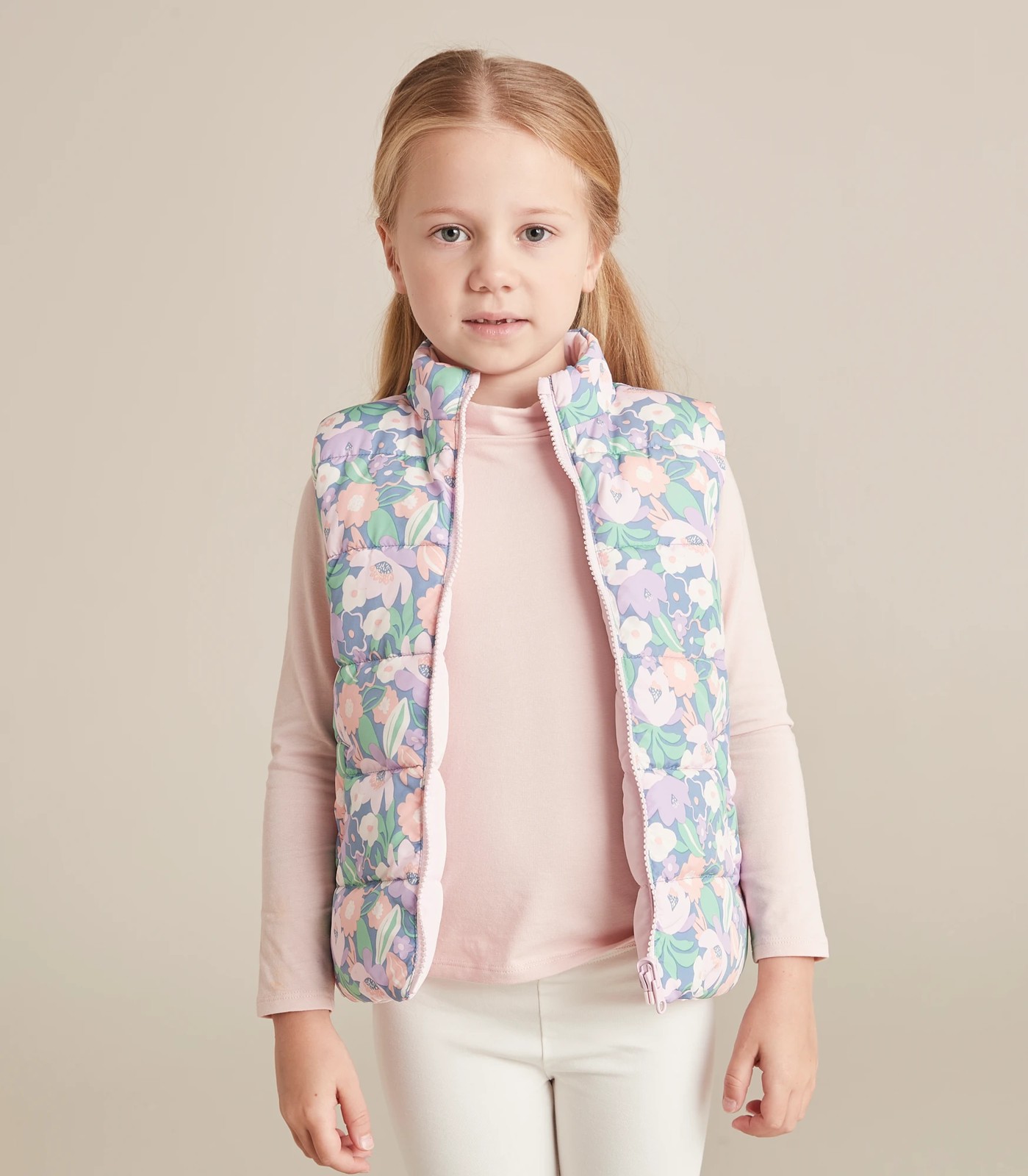 A great addition to her wardrobe this season comes the Reversible Puffer Vest, with an all over floral print to one side and a reversible block colour side that are both padded to keep her extra warm and dry.