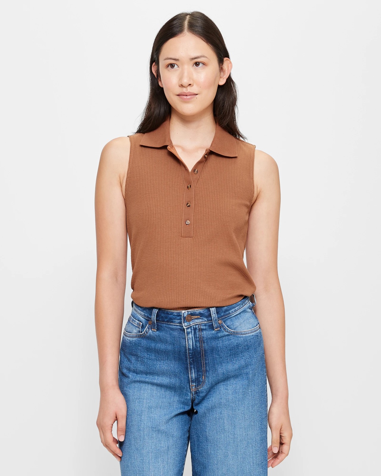 Introducing our Rib Knit Henley Polo Top, a versatile addition to your wardrobe. Made from a blend of polyester and cotton, this top offers both comfort and stretch. The all-over ribbed material adds a touch of texture and style. With its regular fit and round collared neckline, it is suitable for any occasion. The button-down front and sleeveless design give it a modern twist. This top is also eco-friendly, as it contains recycled materials. Pair it with your favourite bottoms for a chic and timeless look. Upgrade your style game and add this Rib Knit Henley Polo Top to your cart now!