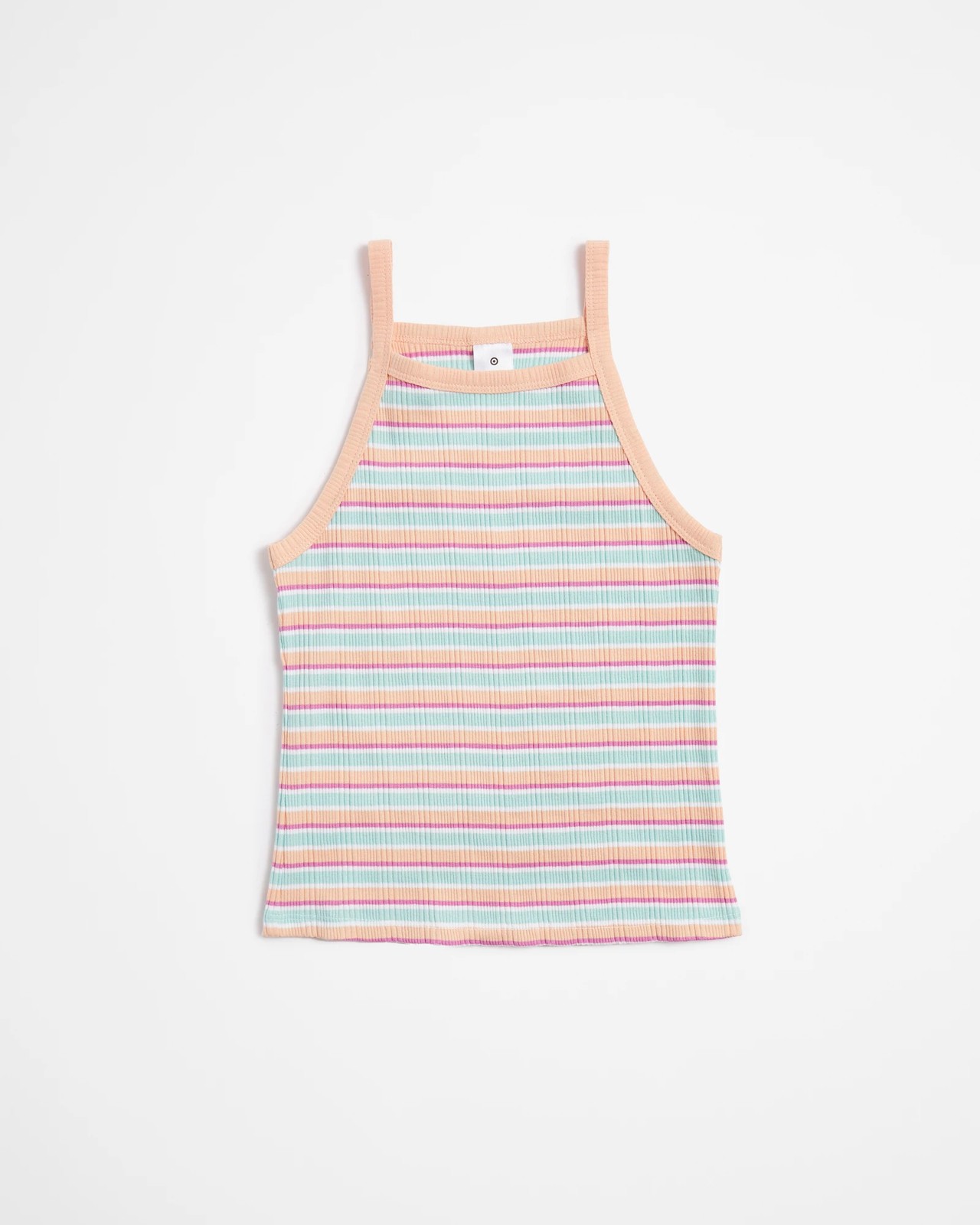 Our stylish Rib Stripe Singlet is the perfect addition to any wardrobe. Crafted from a soft and breathable cotton-rich rib knit, this singlet features spaghetti straps, a flattering square neckline and an all-over stripe pattern. A straight hem completes the look for a classic, timeless finish. Perfect for girls who love to make a statement with their style.