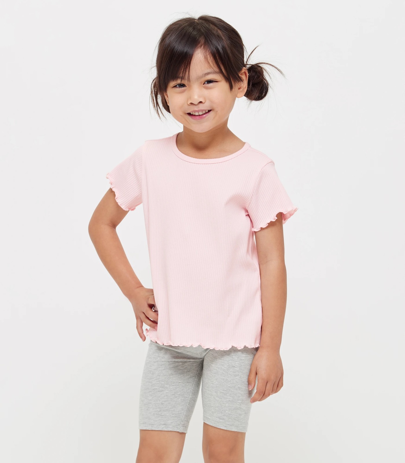 Introduce a fashionable and fun look to her wardrobe with the Girls Rib T-shirt from Target! This comfy top is crafted from a cotton-rich blend, giving it a soft and stretchy feel. Featuring a classic crew neckline and cap sleeves with lettuce cuffs and hemline, this ribbed t-shirt is sure to become her go-to for any occasion. Show off her unique style with the Girls Rib T-shirt from Target!