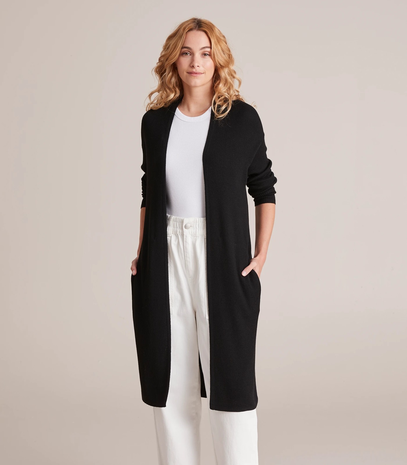 Perfect for layering as the weather turns cold, the edge-to-edge cardigan is the perfect layering accessory to keep you warm. It features an open front, long sleeves for warmth and is lightweight for everyday wear.