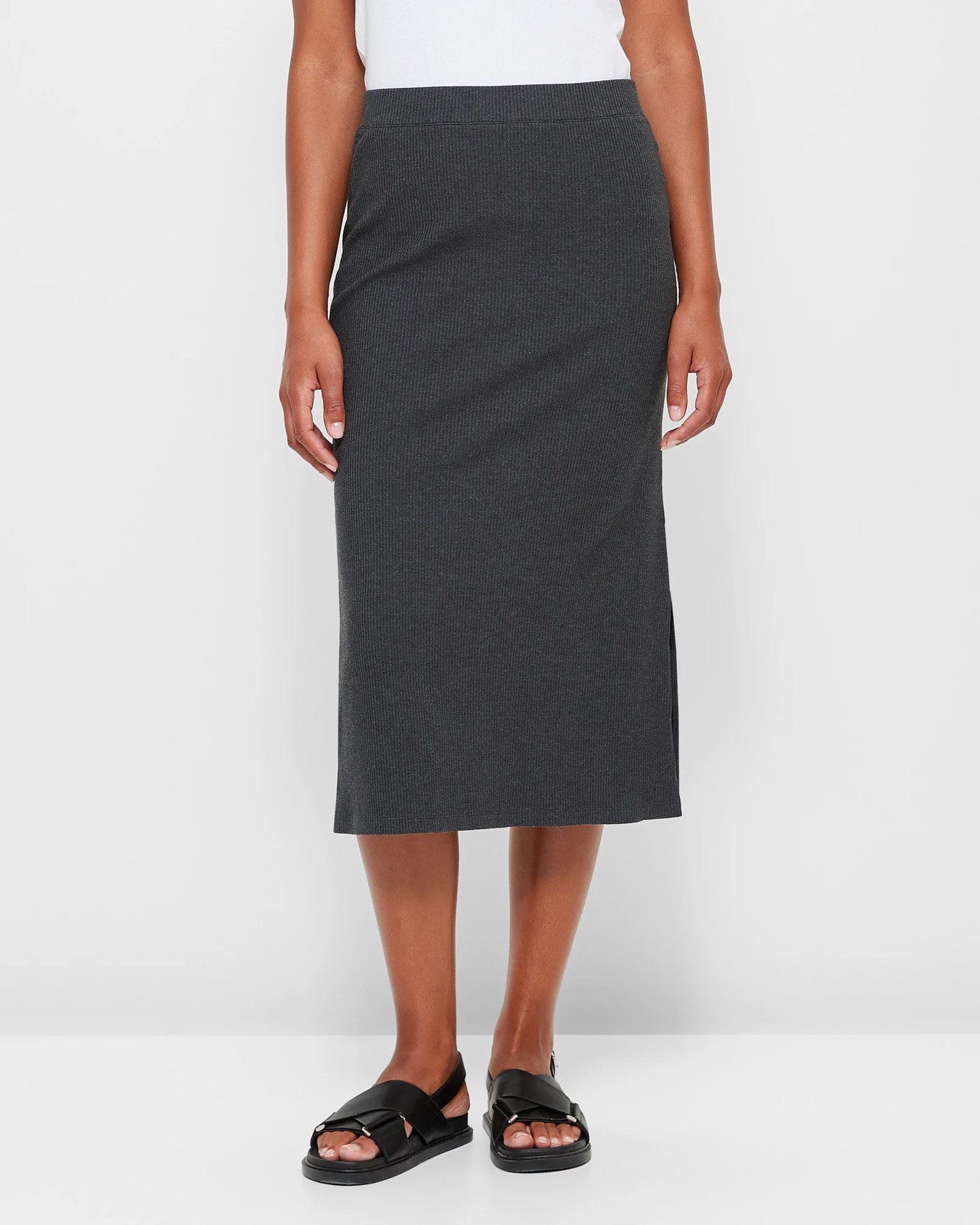 Upgrade your wardrobe with this Ribbed Skirt. Crafted from a high-quality cotton/polyester blend, this skirt offers a comfortable and stretchy fit. The all-over ribbed design adds a touch of sophistication, making it suitable for both casual and formal occasions. With its regular fit and flattering pencil cut, this midi length skirt is a versatile addition to your collection. The straight hemline and side seam split allow for easy movement and added style. Complete your look by pairing it with your favourite top and heels. Embrace style and comfort with this elegant Ribbed Skirt!
