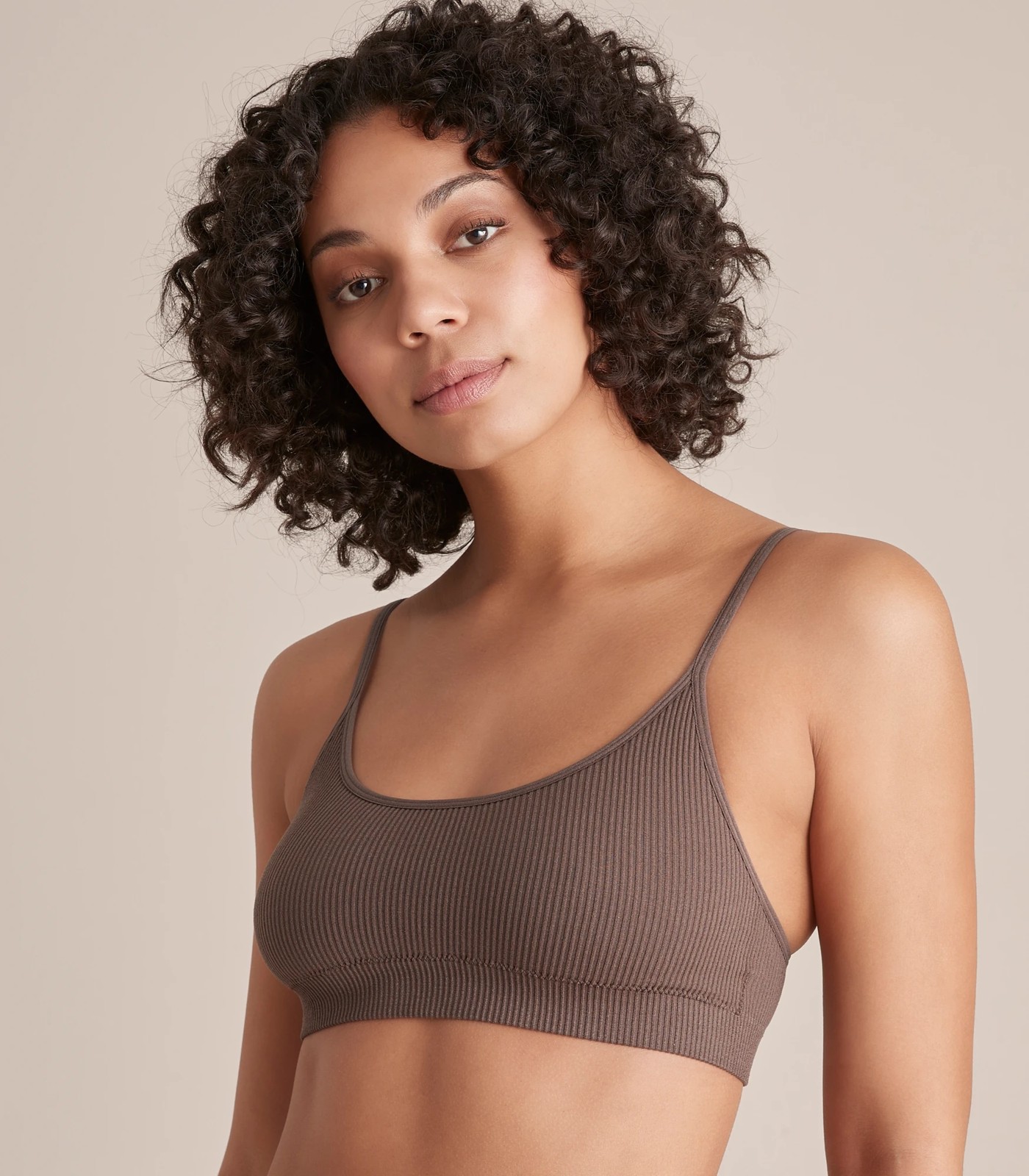 For the woman who loves comfort without the restriction of wire, the Lily Loves ribbed crop bra is wirefree, has adjustable shoulder straps and removable padded cups.