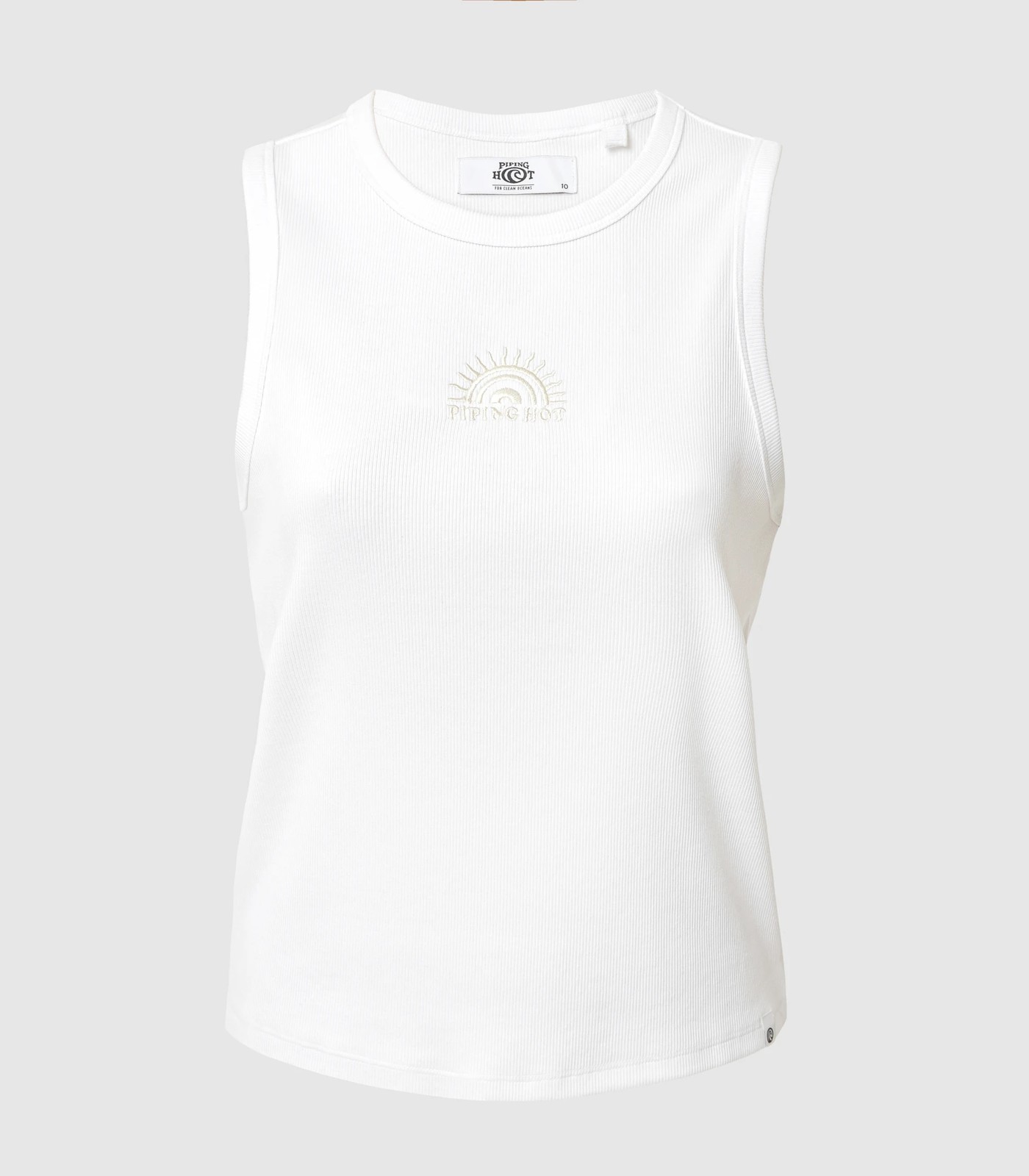 For the perfect summer singlet, look no further than this Piping Hot ribbed tank top with embroidery detail. Comfy and flattering for all shapes and sizes. Easy to style and live in all summer.