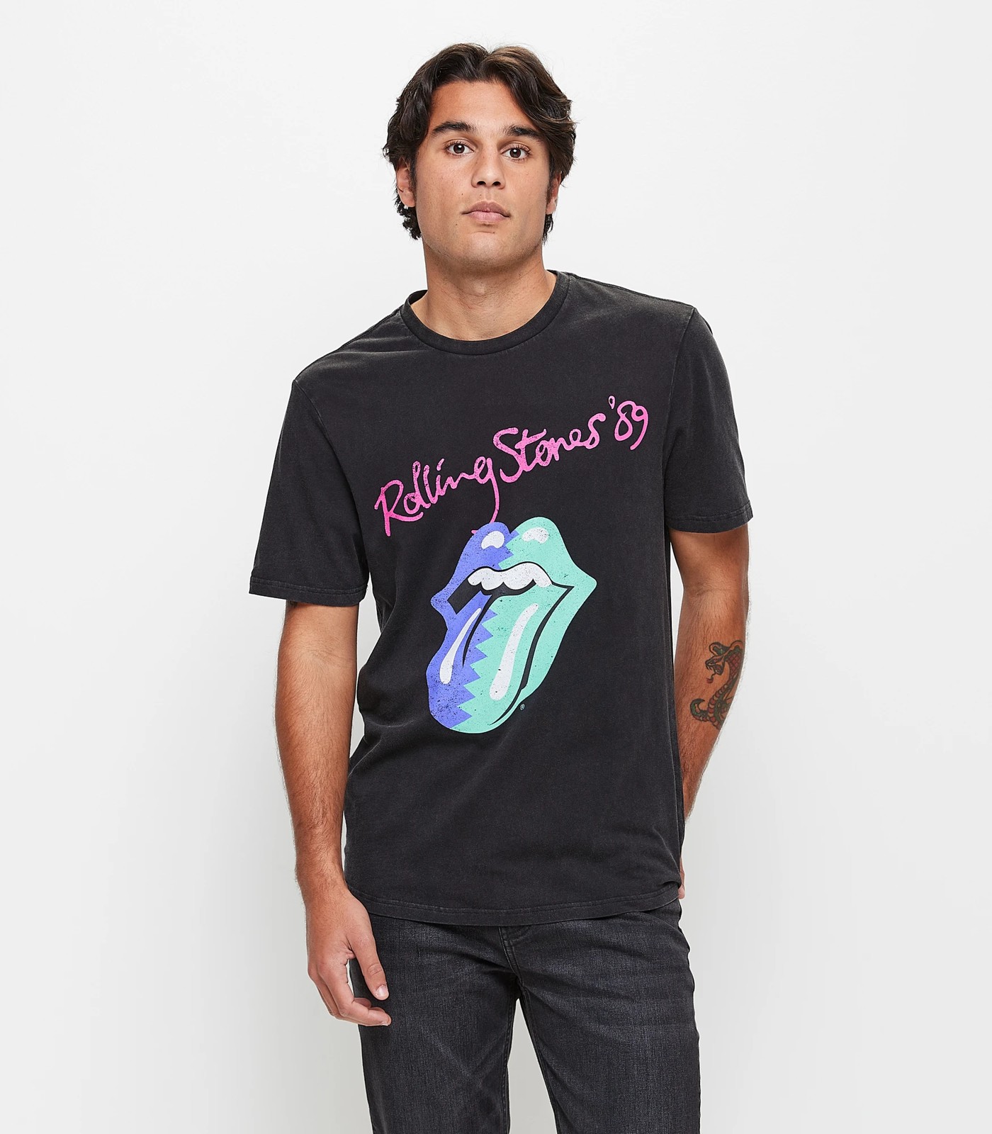 The Rolling Stones Print T-Shirt is crafted from cotton for a soft and comfortable feel. It boasts a classic regular fit with an acid black finish and specialty wash for added depth. The t-shirt is finished with a licensed chest print, short sleeves, crew neckline and straight hemline. Whether you're headed to a gig or simply want to show off your musical tastes, this Rolling Stones tee will be sure to make you stand out in style.
