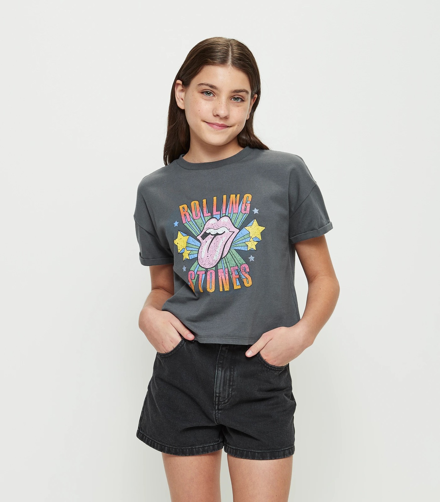 Look cool and stylish this season in the Girls Rolling Stones T-shirt from Target. Crafted from a cotton rich fabric, this regular fit t-shirt is designed with a ribbed crew neck, short sleeves with turned cuffs and a straight hem. Boasting a large Rolling Stones print to the chest, it's sure to become an off-duty favourite.