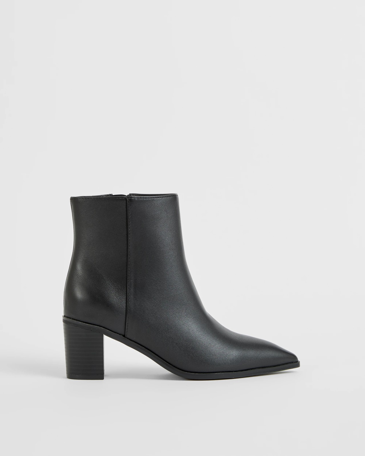 Ruby Genuine Leather Block Heel Point Boot - Black