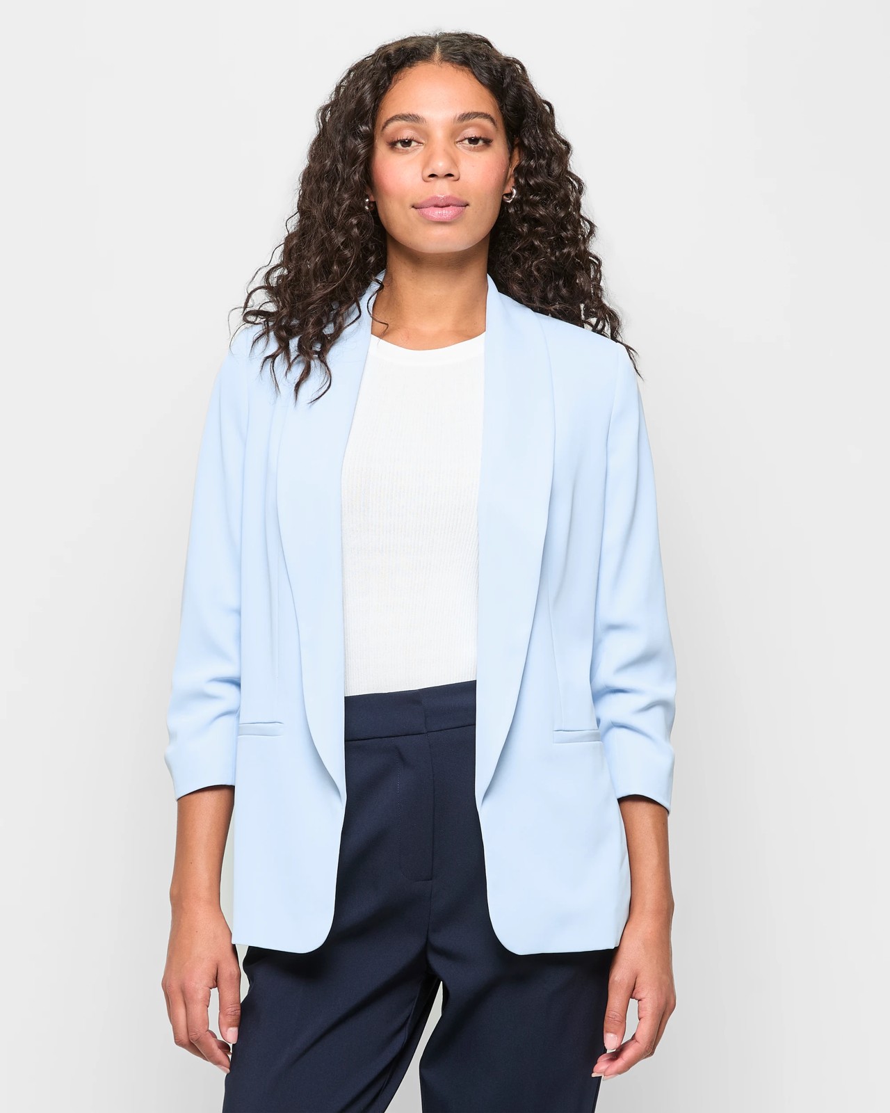 Discover the charm of our Ruched Sleeve Blazer, designed from lightweight polyester for an effortless wear. This fitted blazer boasts a round collared neckline with stylish front lapels and an open front. The long ruched sleeves add an interesting texture, while front pockets offer practicality. Its straight hemline completes the sophisticated look, making it a perfect choice for both casual and formal occasions. Add this stunning piece to your wardrobe and make every outfit special.