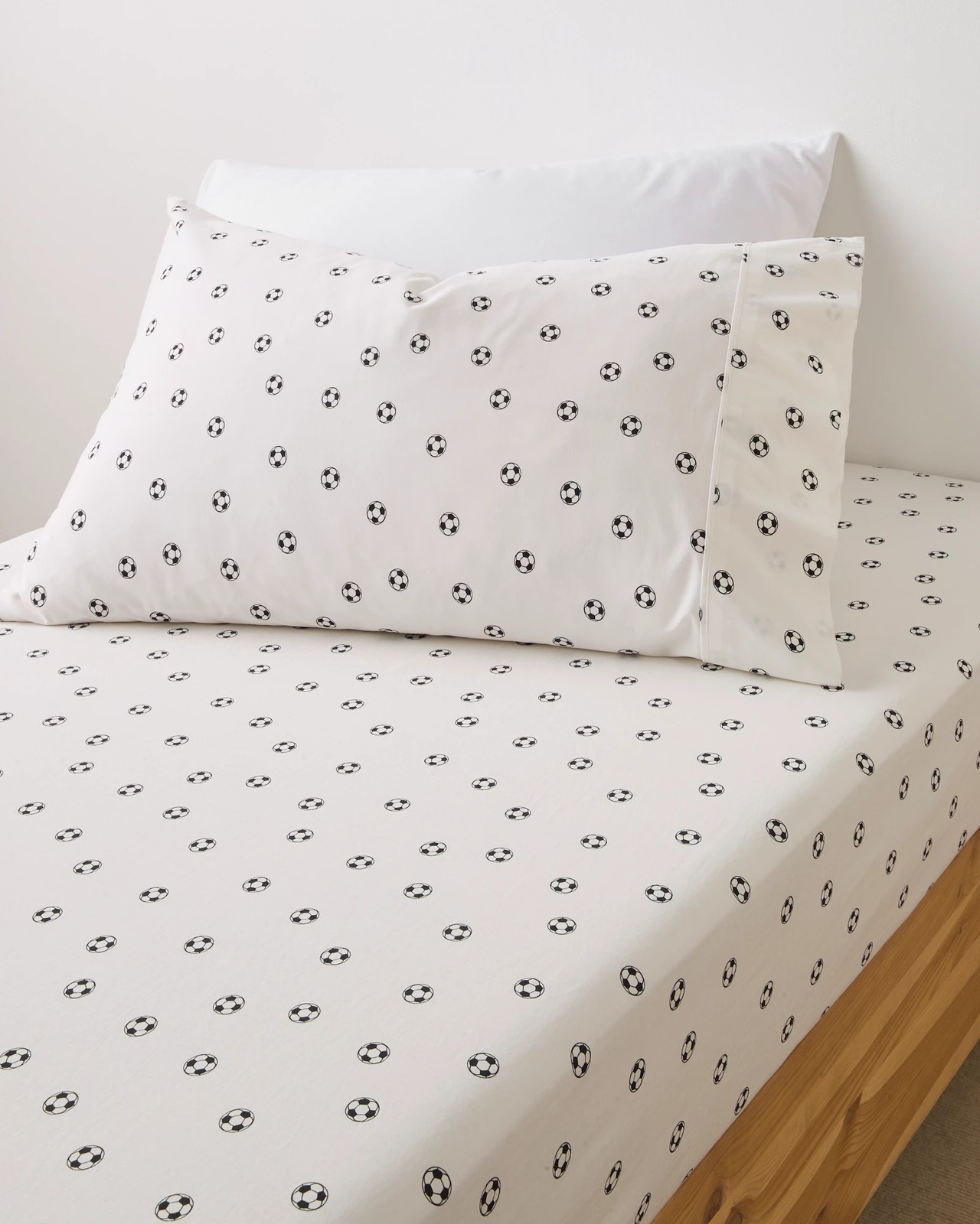Bring a cheerful touch to any bedroom with the Sammy Soccer Ball Australian Cotton Print Fitted Sheet Set. The smooth, naturally soft cotton is wonderfully gentle and allows air to flow for a comfy sleep all night long. Featuring a charming all over soccer ball print, this set brings playful energy and is perfect for football fans of any age. The 250 thread count gives a smooth feel that welcomes you to unwind after a busy day. Easy to look after, the entire set is suitable for machine washing, saving you time and effort. Add a lively accent to bedtime and create a cosy retreat you'll love to come back to.