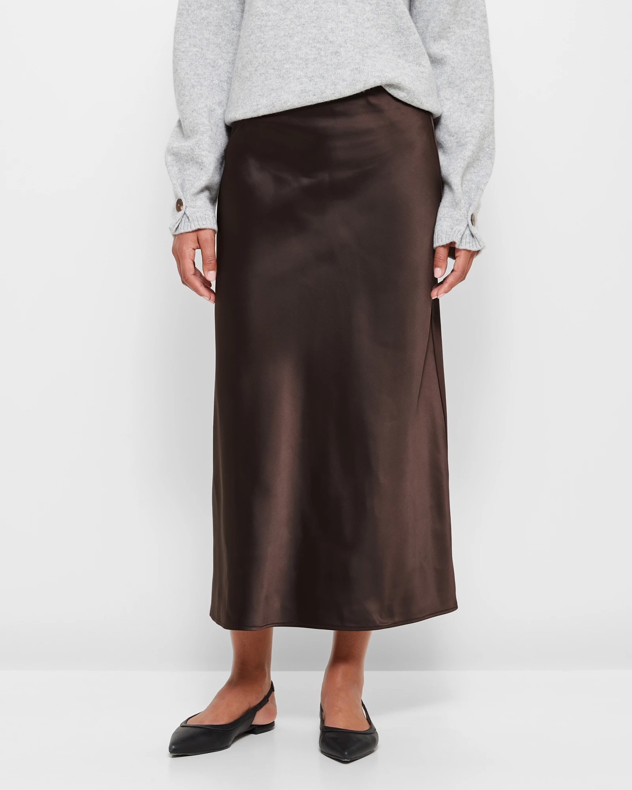 Experience elegance and comfort with the satin A-line midi slip skirt. Crafted from a polyester blend, the skirt offers a silky smooth feel against your skin. The hidden elastic waistband enhances both style and ease of wear. Its lustrous satin finish adds a touch of sophistication, making every step a statement. Step into effortless style with the A-line cut and flattering midi length, perfect for any occasion. Treat yourself to timeless grace and versatility today!