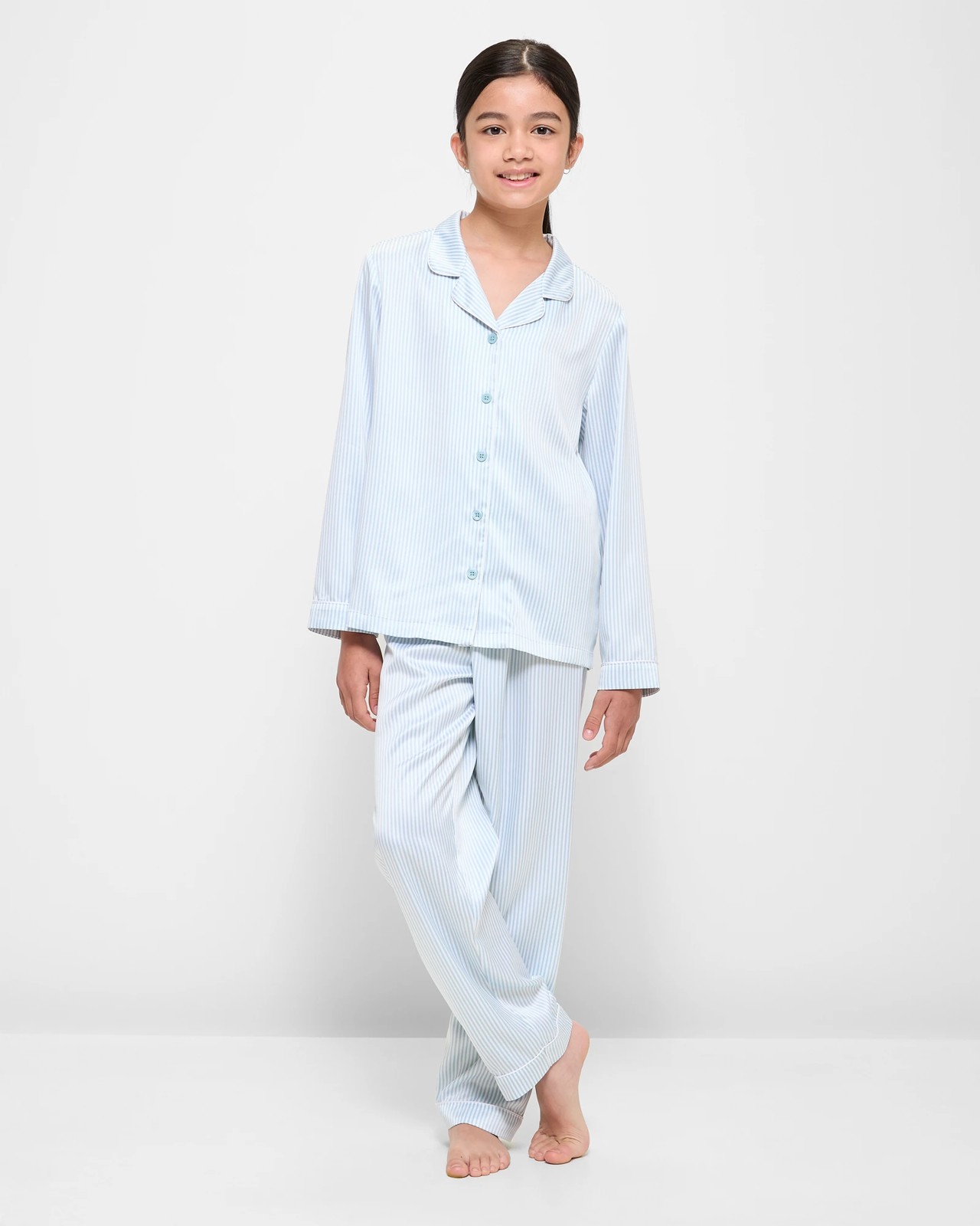 Kids Satin Long Sleeve Pyjama Set - Blue Stripe 6 of 6