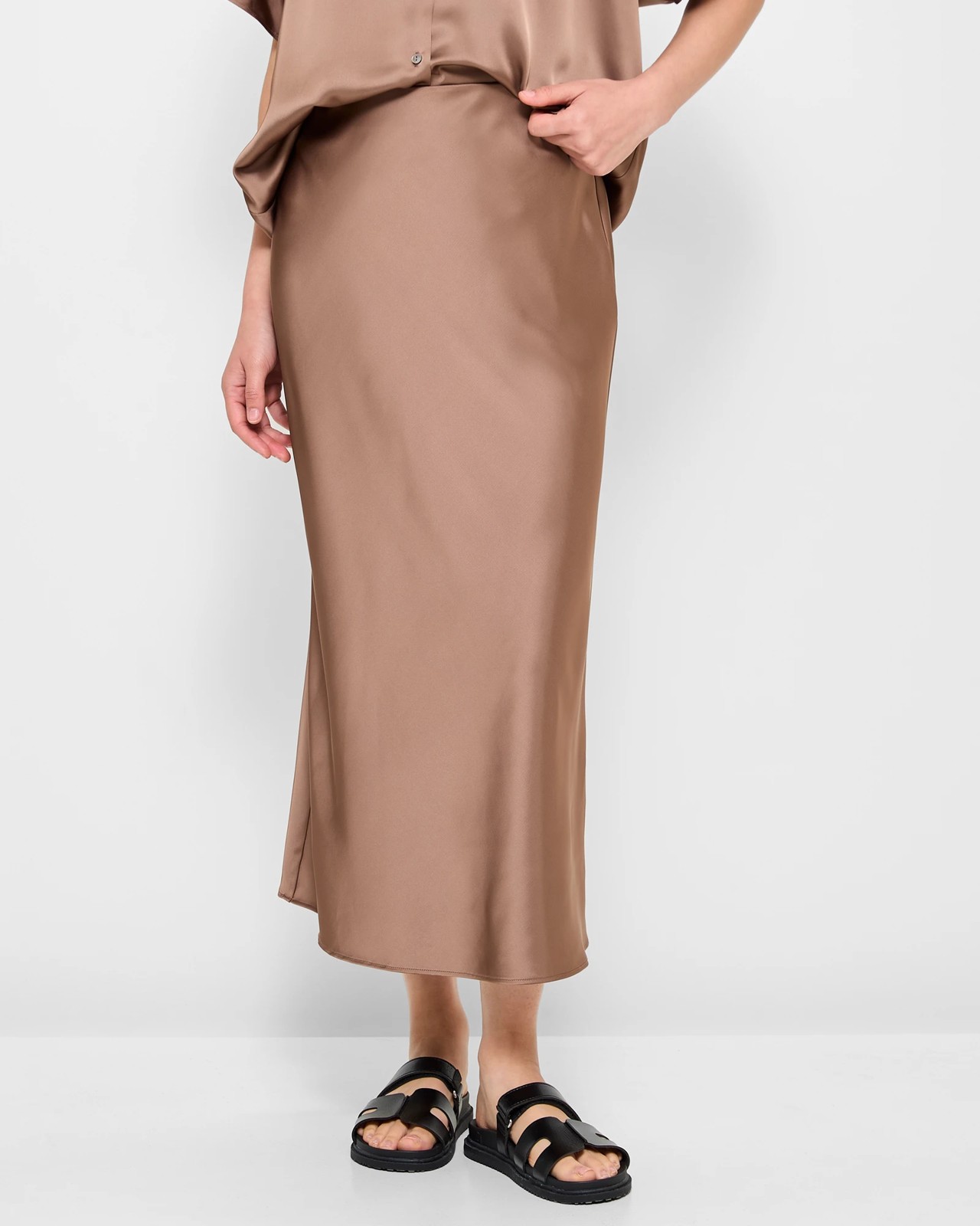 Introducing our Satin Slip Skirt from Preview. This stunning skirt is made from a luxurious polyester fabric that feels incredibly soft and silky. It offers a comfortable stretch that moves with you throughout the day, and it's also made with recycled materials, so you can feel good about your purchase. The skirt features a stylish A-line cut and a flattering midi length, perfect for any occasion. With its slip-on design and hidden elastic waistband, it provides a seamless fit that stays in place all day long. Complete your look with this elegant skirt and experience the perfect blend of style and comfort.