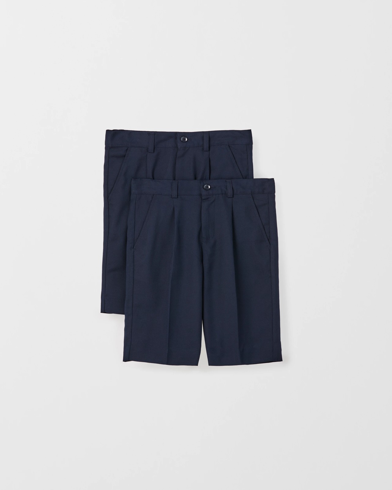Introduce your child to comfort and style with our Structured Twill Shorts 2 Pack. These shorts offer a great fit with an adjustable waistband, ensuring they stay comfortable throughout the day. Featuring a classic button and zip fly front along with belt loops, it blends functionality with a smart appearance. The pleated front adds a touch of sophistication, while the side and back pockets are perfect for holding small essentials. Perfect for school or casual wear, these shorts are an essential addition to any school wardrobe.