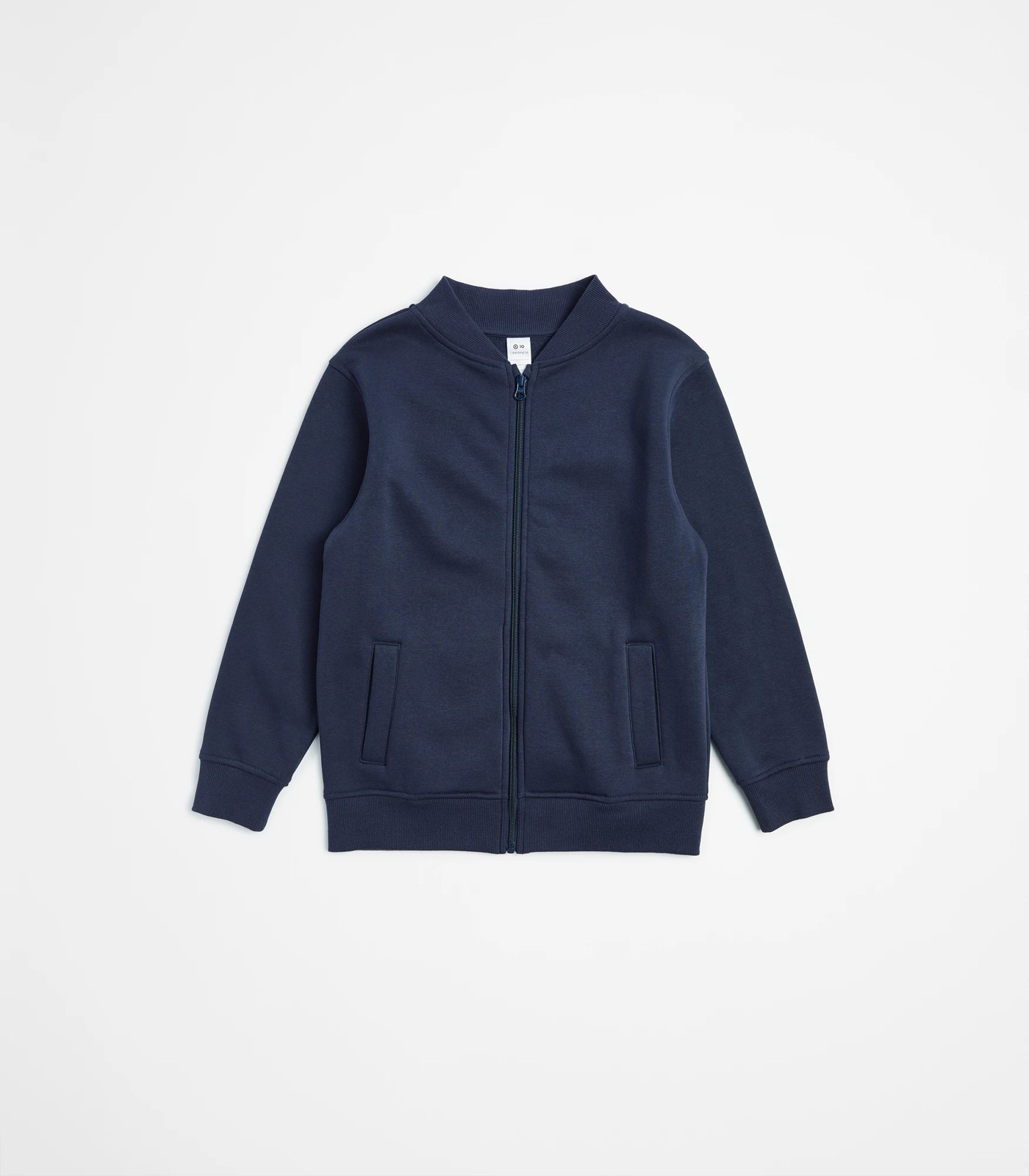Elevate your child's school wardrobe with our cosy School Fleece Bomber Jacket. Designed from a cotton-rich fabric, this jacket promises all-day comfort and warmth. The regular fit, paired with a ribbed collar and cuffs, ensures snug yet flexible wear. Featuring a zip-up front and handy side seam pockets, it adds both practicality and style to your child's daily outfit. The fleece lining provides an extra layer of warmth perfect for chilly mornings. Plus, the convenient sewn-in name tag makes lost property a worry from the past. Make mornings hassle-free with this essential school jacket!