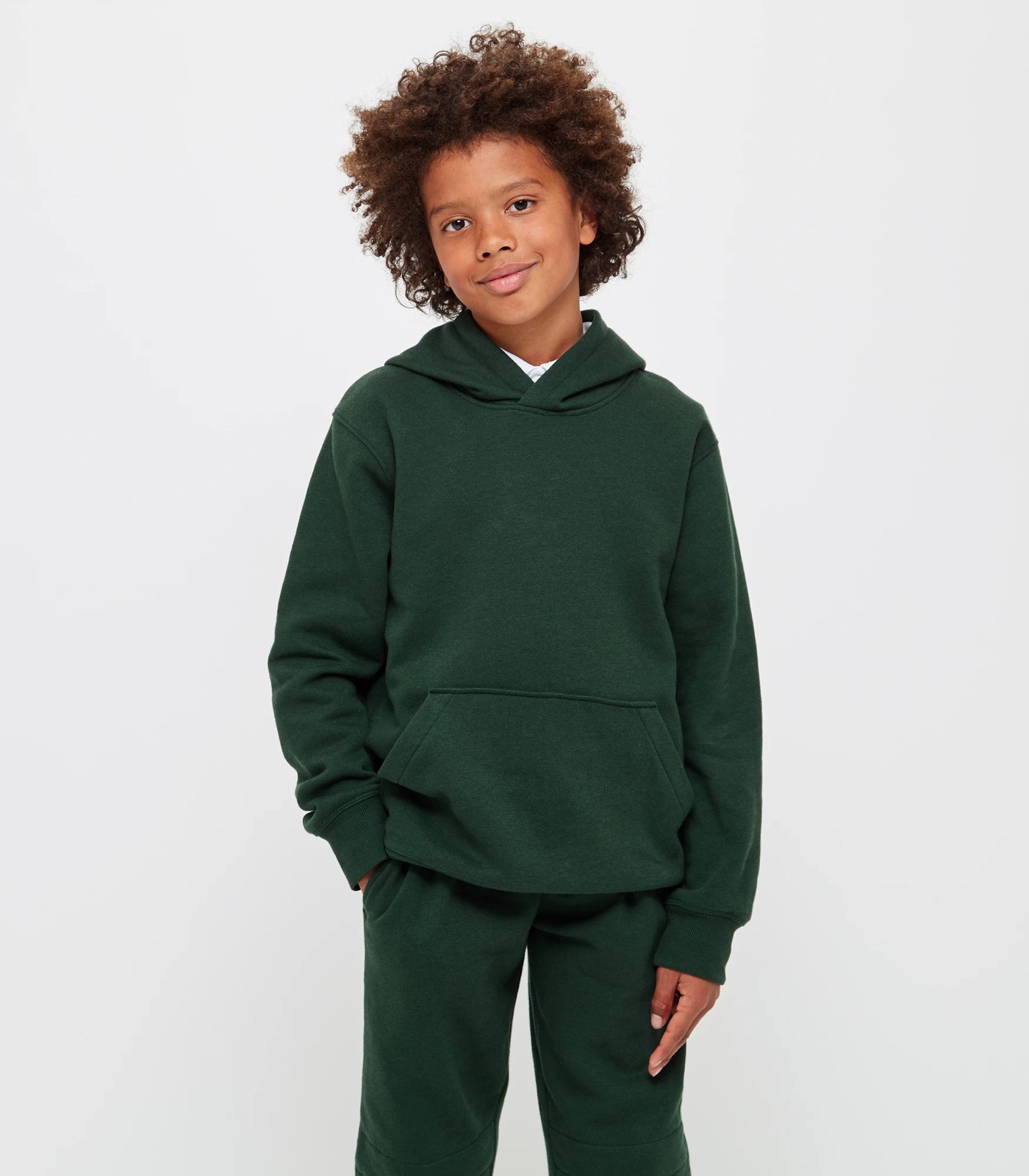 Stay warm and look great in this stylish School Hoodie! This hoodie is crafted with a cotton poly blend for comfort and durability. The regular fit design features a hood, long sleeves with ribbed cuffs, front kanga pocket, and straight ribbed hem. It is also fleece lined for extra warmth and has a sewn in name tag for convenience. Available in a variety of colours, this School Hoodie is the perfect addition to any wardrobe!