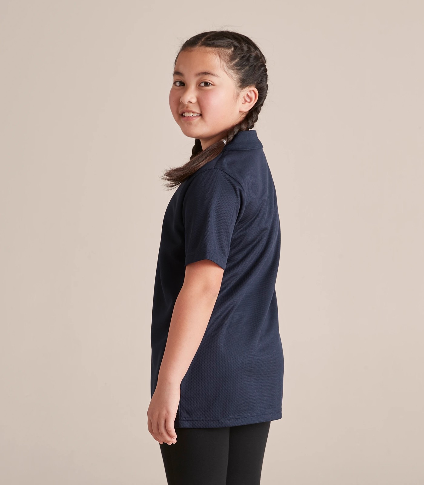 A school wardrobe staple. This light-weight short sleeve mesh polo top features two chest buttons and is perfect for those sports-packed school days - a school wardrobe staple. Crafted from breathable polyester mesh designed to keep the skin dry and body cool, whilst being super easy to care for. Includes a sewn in name tag for personalisation.