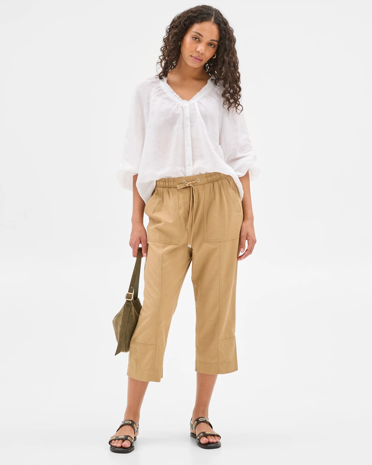 Step into easy-going comfort with these seamed three quarter jogger pants. The soft lyocell, viscose and cotton blend feels gentle on your skin and moves with you throughout your day. Designed with a mid-rise fit, adjustable drawstring waist, and handy pockets, they combine practicality and style for any activity. The signature front seam adds a modern twist, while the straight leg offers relaxed appeal. Whether you're meeting friends or enjoying downtime at home, these joggers promise to keep you looking and feeling your best.