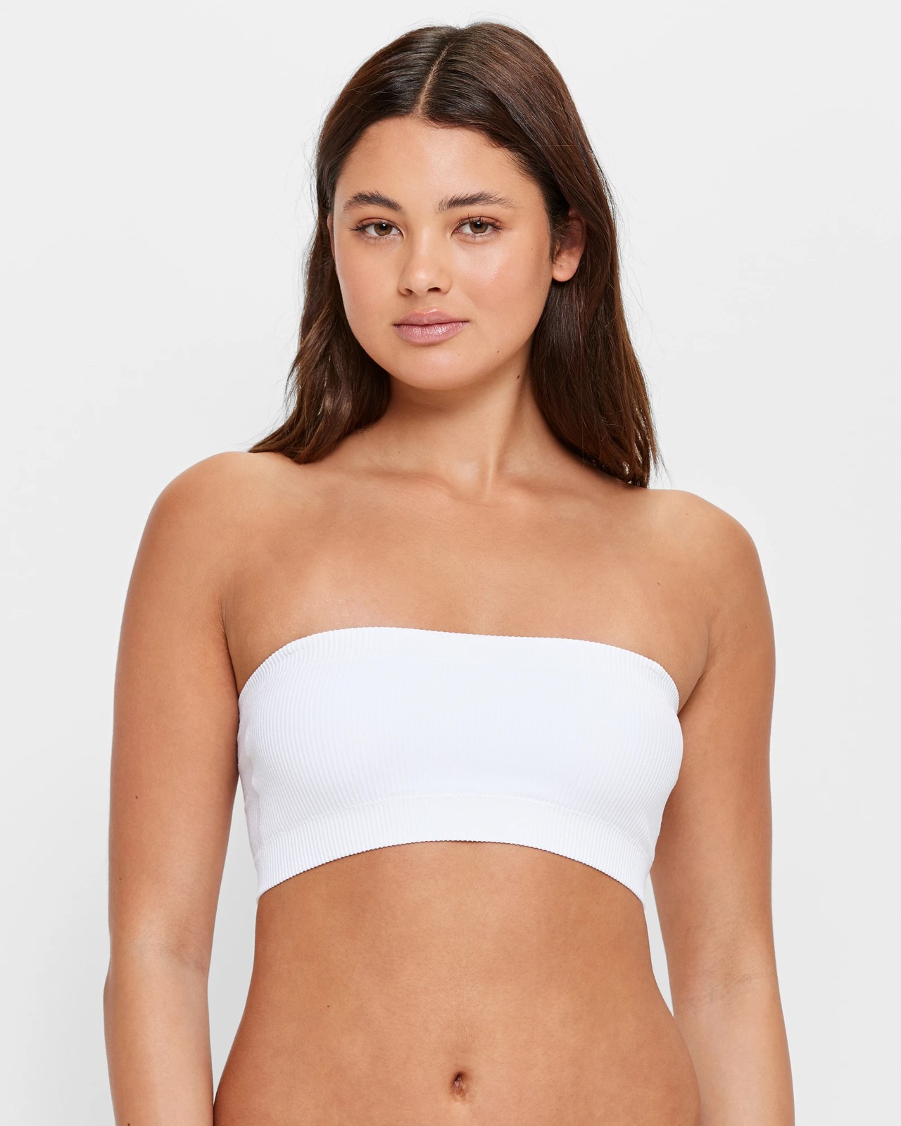 Introducing the Seamfree Rib Bandeau Crop Top from Lily Loves at Target! This stylish and comfortable top is designed with recycled nylon and elastane for a lightweight feel that you can wear all day. It features an all over ribbed design, a bandeau style silhouette with a straight neckline, removable adjustable shoulder straps, wirefree construction, and removable padded cups for added support. The thick underbust band offers extra coverage and security, making this the perfect top to wear for any occasion.