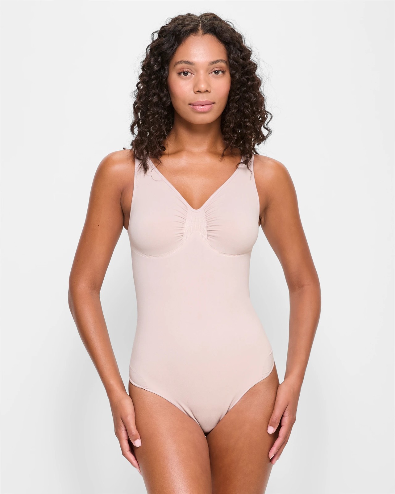 Experience unparalleled comfort and support with this Women's Seamless G-String Bodysuit. This bodysuit is made from a high-quality nylon blend and offers a flexible fit with stretch elastane. It features a streamlined design with thick shoulder straps and a deep V-neckline for added style. The targeted compression helps create smooth lines, and the firm support ensures a secure fit. With a high-cut leg and snap closure at the crotch, this one-piece is both practical and fashionable. The G-string back design prevents visible panty lines, making it suitable for any outfit.