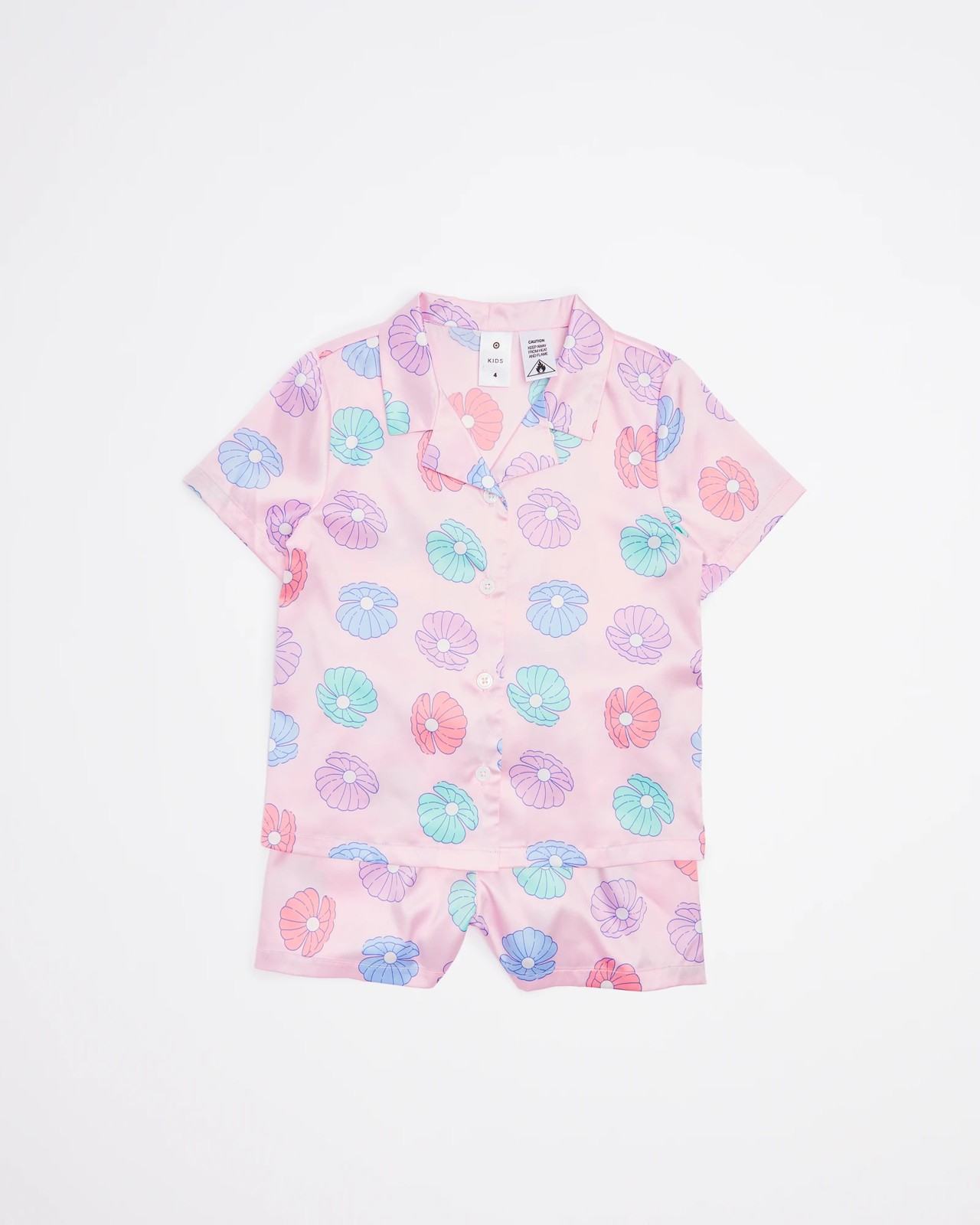 Introducing the perfect sleep set – the Seashell Satin Pyjama Set! Crafted from a luxuriously soft polyester satin, this two piece sleep set is designed with a regular fit and features a pink seashell print. The top has a collared neckline with button down front and short sleeves, while the shorts have an elastic waistband for easy wearing. With its straight hem and matching shorts, this pyjama set is sure to be the highlight of any girl's wardrobe!