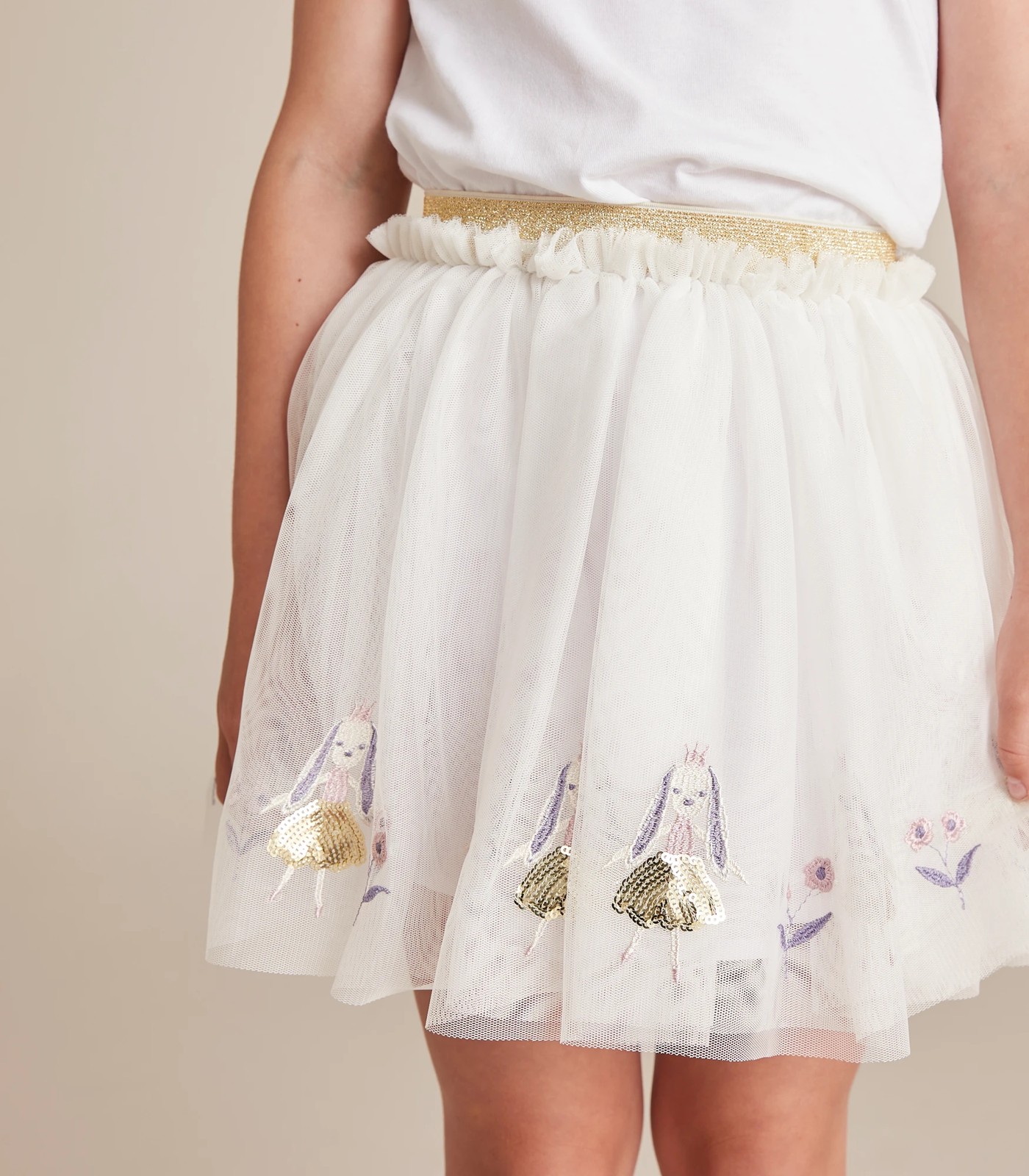 A perfect addition to her Easter wardrobe comes the Sequin Bunny Tulle Skirt, featuring a sequin bunny applique trim, glitter elastic waistband and lined with a light cotton fabric.