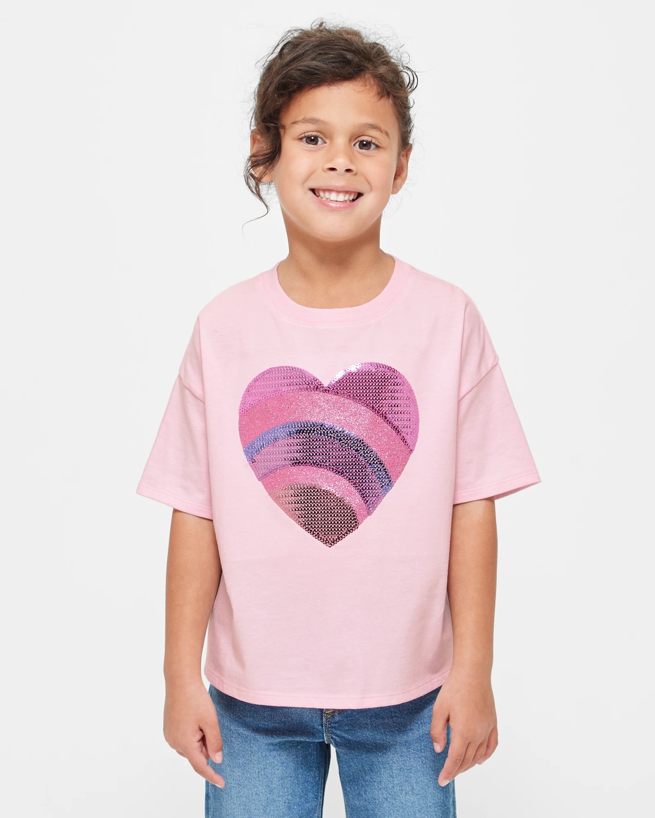 Step up her casual style with our Sequin Oversized T-shirt. Crafted from soft cotton, its relaxed fit offers comfort and chic vibes in one. The glamorous sequin heart print on the front adds a touch of sparkle to her outfit. Perfect for those fun days out or casual nights in!
