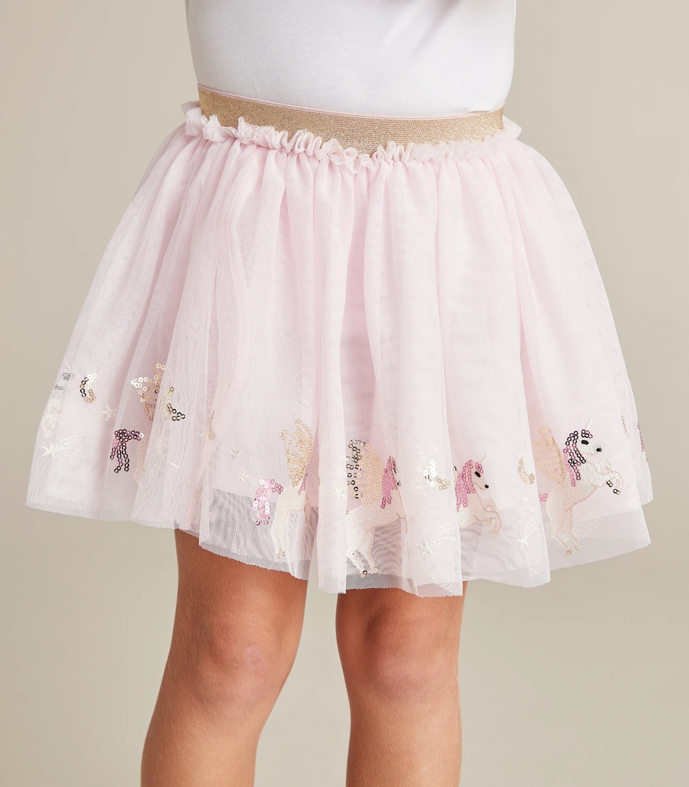 Great for dress ups or as partywear, the Sequin Tutu Skirt features a sequin applique trim, gold sparkly elastic waistband and lined with a light cotton fabric.