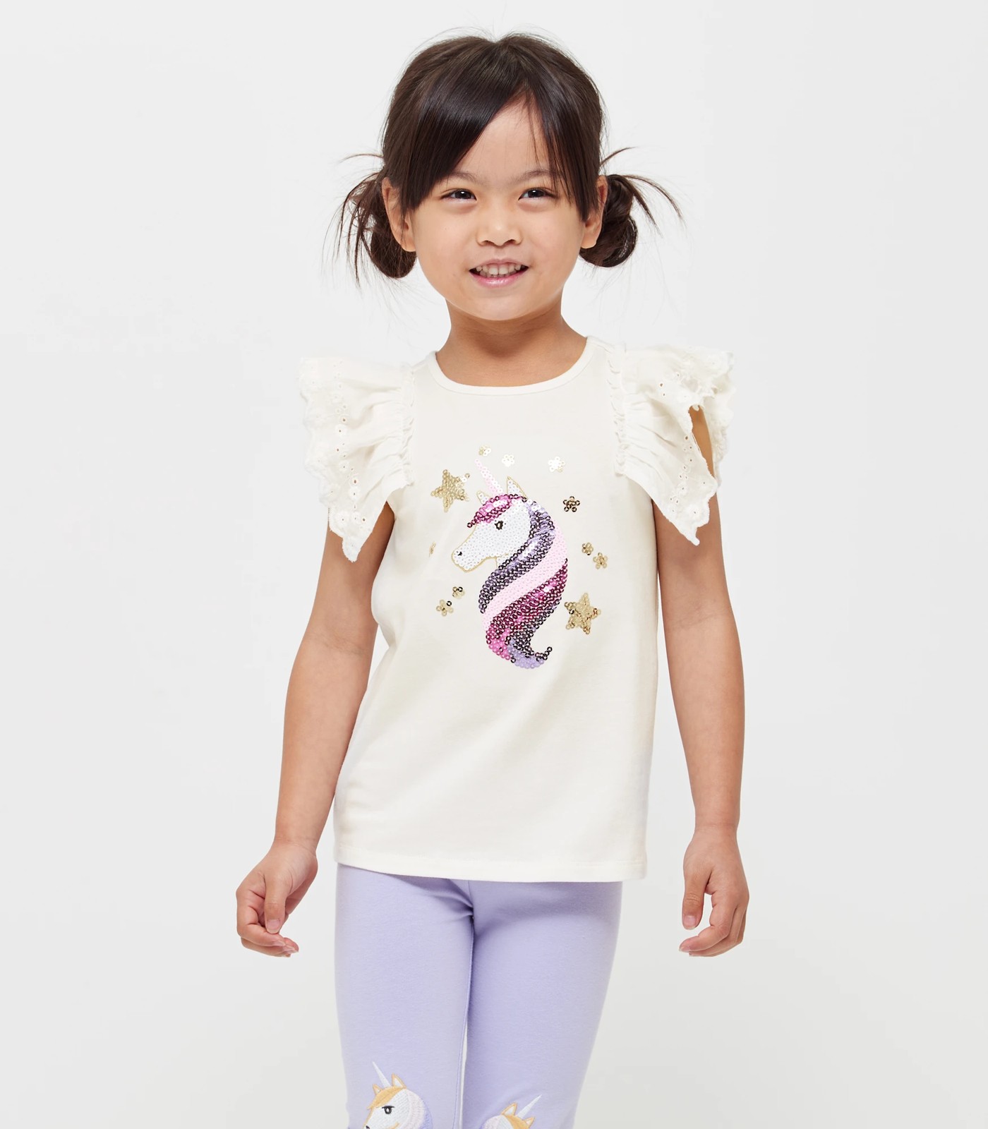 This cute and comfy Tank is a great addition to any girl's wardrobe. Crafted from a cotton-rich fabric, it features a regular fit with a round neckline and straight hem. The standout detail is the broderie sleeve trim, complete with a large unicorn sequin print to the chest. Perfect for adding some fun and sparkle to her everyday look!