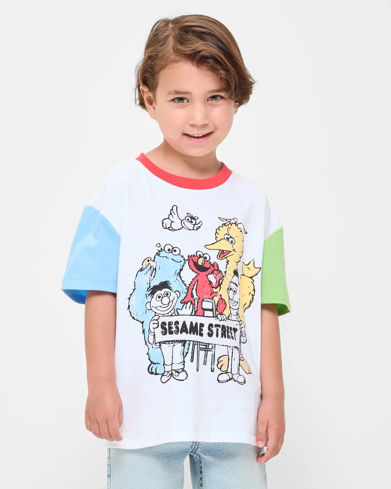 Step into the world of Sesame Street with this vibrant spliced T-shirt. Made from soft cotton, it offers a comfortable, regular fit for your everyday adventures. The striking Sesame Street print on the front and back is sure to turn heads, while the contrasting ribbed crew neck and short sleeves add a playful touch. Whether you're reminiscing about your favourite childhood show or introducing it to the next generation, this T-shirt is a joyous addition to any wardrobe. Grab yours now and bring a piece of Sesame Street magic into your life!