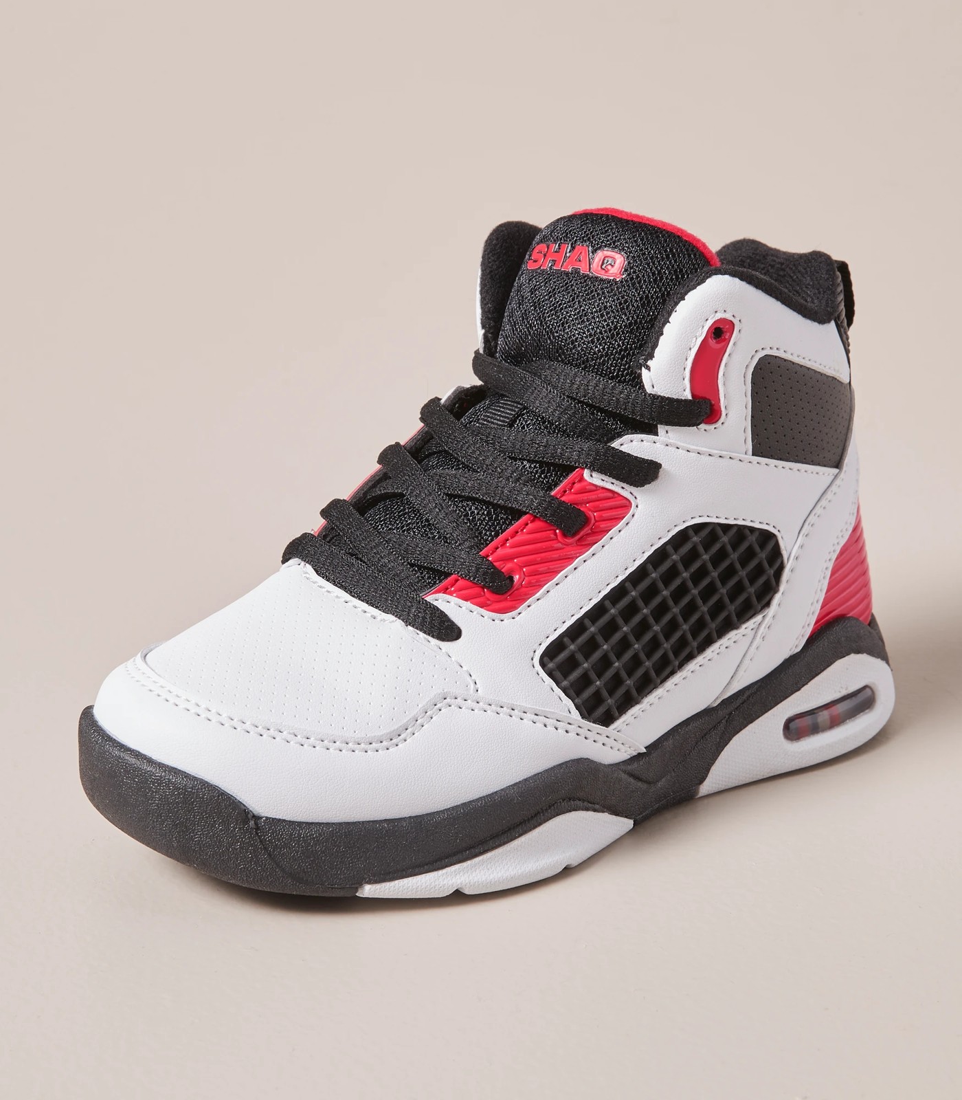 For lovers of basketball, the Shaq Bank Shot hi-top sneakers are perfect for playing basketball or just looking cool. They feature a hi-top design, a lace up front with a slightly cushioned innersole and the classic Shaq logo on the back.