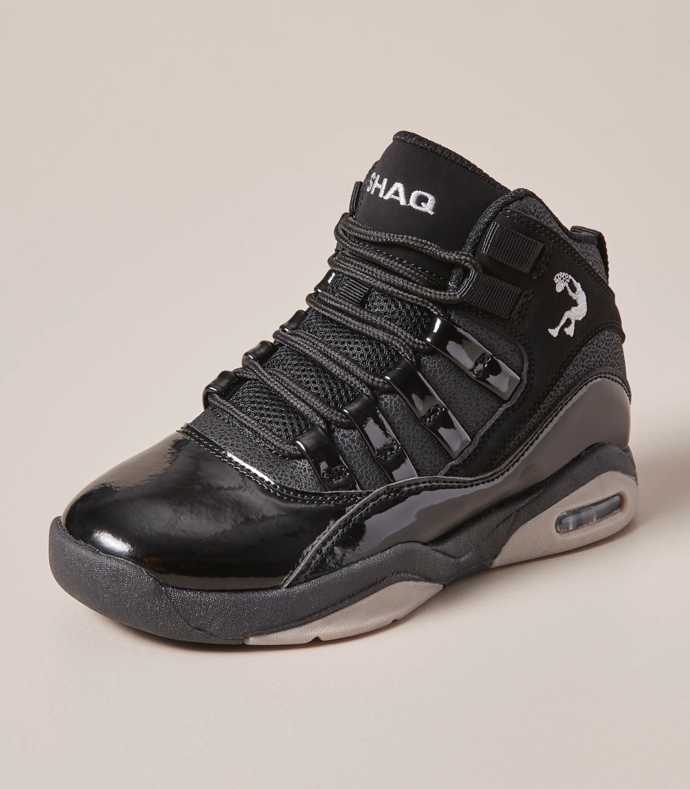 For lovers of basketball, the Shaq Full Press hi-top sneakers are perfect for playing basketball or just looking cool. They feature a hi-top design, a lace up front with a slightly cushioned innersole and the classic Shaq logo on the side.