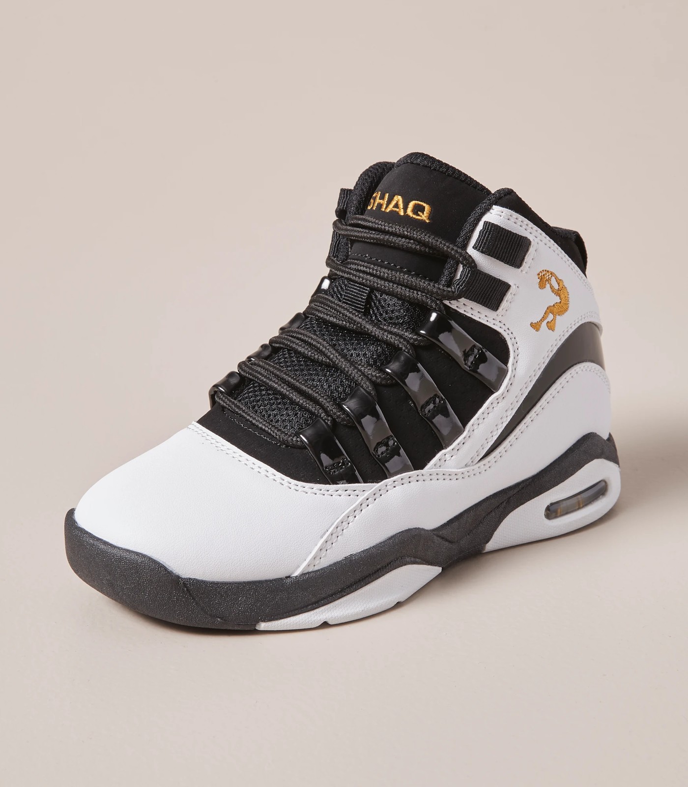 For lovers of basketball, the Shaq Full Press hi-top sneakers are perfect for playing basketball or just looking cool. They feature a hi-top design, a lace up front with a slightly cushioned innersole and the classic Shaq logo on the side.