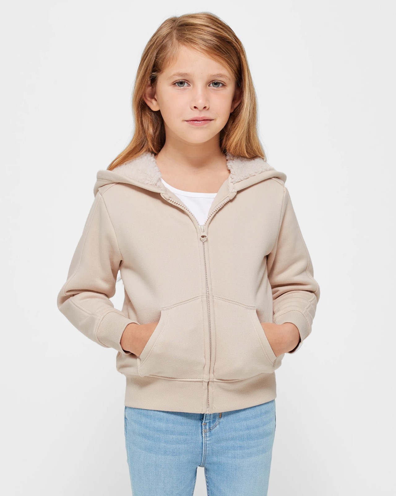 Stay warm and stylish with our Sherpa Lined Zip Thru Hoodie. This girls zip hoodie is made from a soft and comfortable cotton rich fabric, ensuring a cosy fit all day long. The regular fit, hooded design features long sleeves with ribbed cuffs and a zip front for easy on and off. With a front kanga pocket for added convenience and a straight ribbed hem, this hoodie is both practical and trendy. The highlight of this hoodie is the sherpa fleece lining, which provides extra warmth and a luxurious feel. Stay comfortable and fashionable with our Sherpa Lined Zip Thru Hoodie.