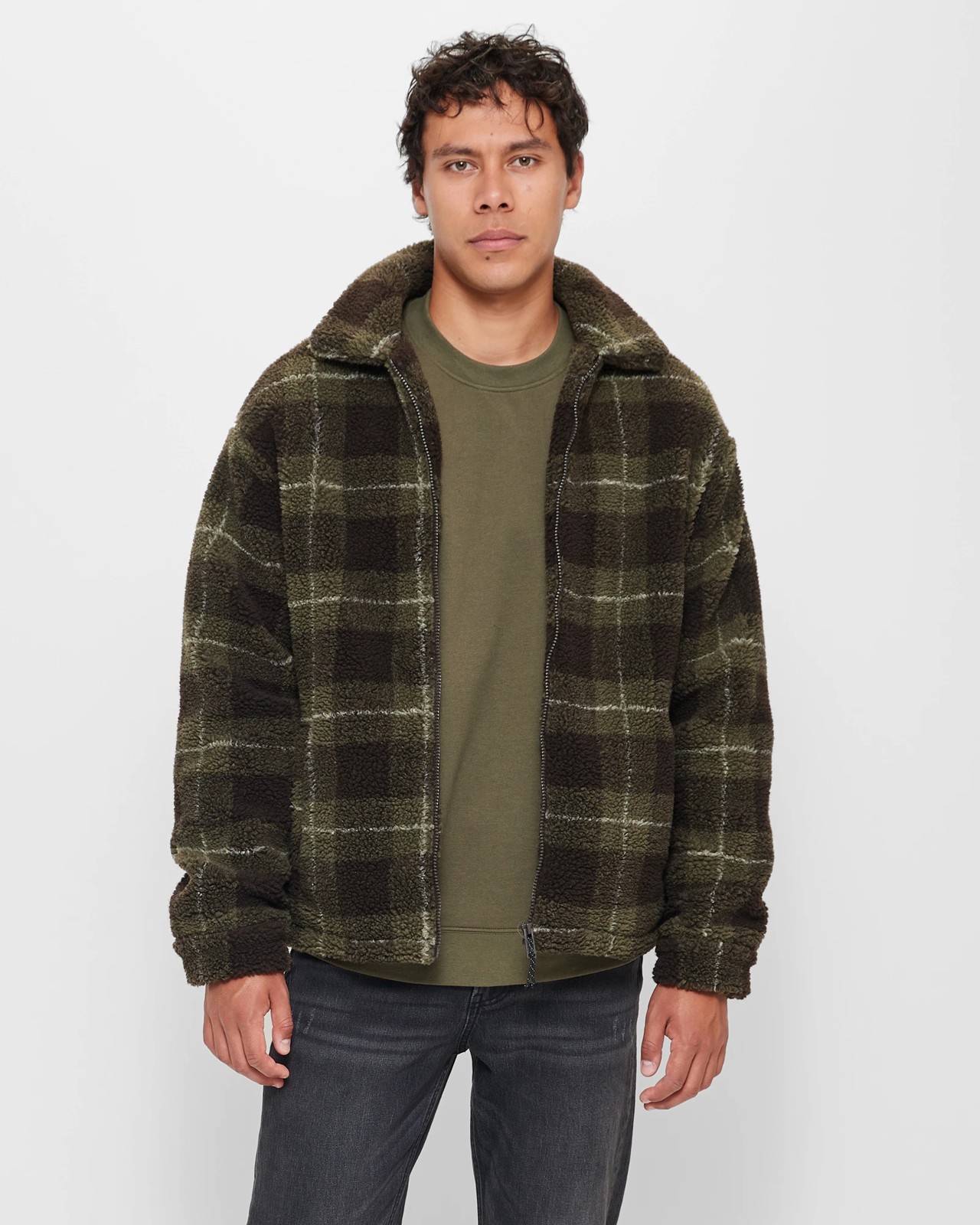 Step out in style with the Sherpa Zip Thru Jacket - Commons, perfect for those crisp days. Fabricated from cosy polyester, this jacket promises warmth and elegance with its brown and green check print. Featuring a round funnel neckline and a zip-through front, it provides both comfort and sophistication. The regular fit ensures it drapes perfectly on any frame, while long sleeves with buttoned cuffs add a touch of definition. Convenient side pockets make it practical for on-the-go lifestyles. With a straight hemline and standard length, it's a versatile addition to any wardrobe. Don't miss your chance to enhance your autumn look - grab yours today!