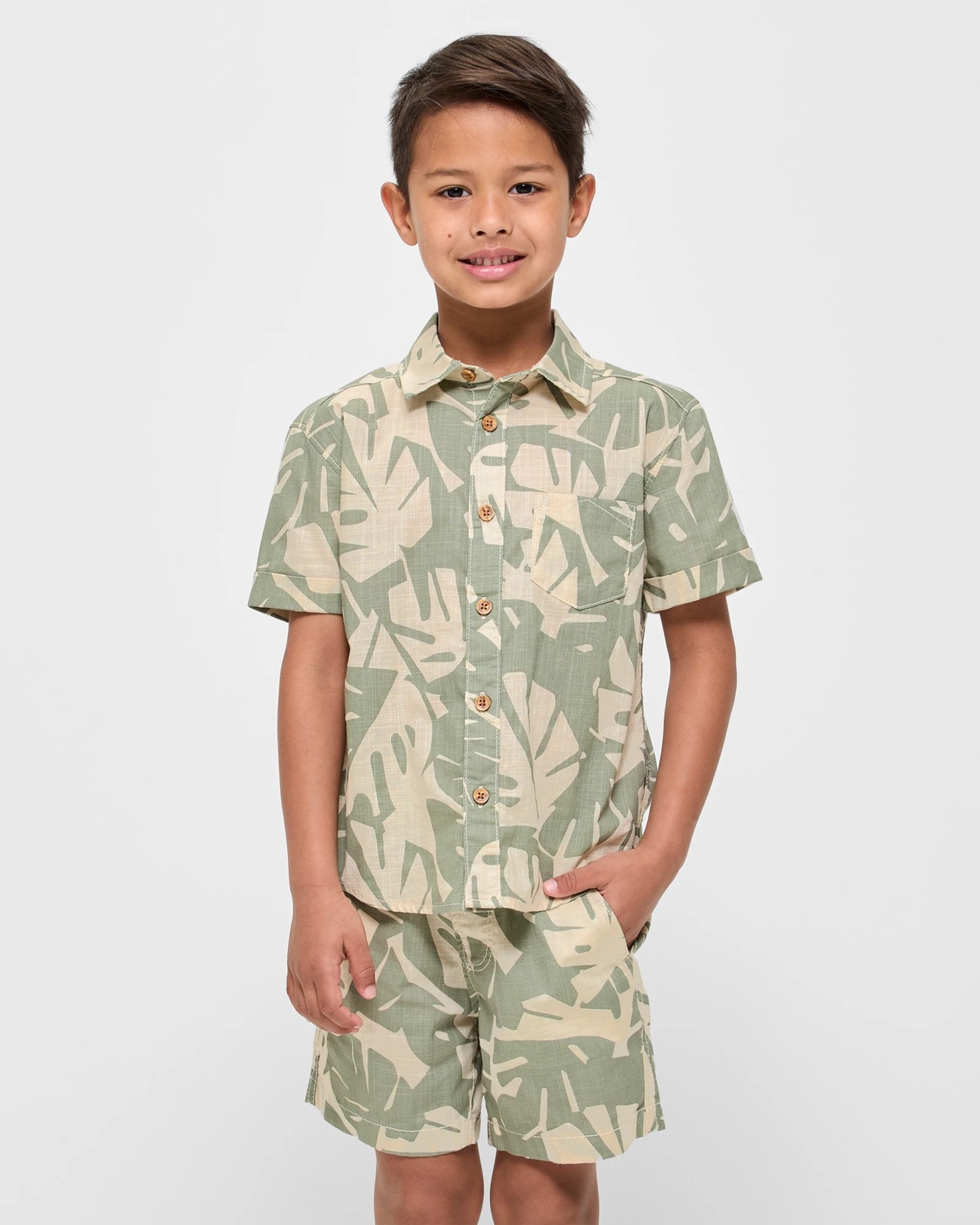 Discover comfort and style with our Shirt and Short 2 Piece Set, perfect for your young explorer. Made from soft cotton, this regular fit set features a beautifully printed shirt with a button-up front, short sleeves, and a handy chest pocket. The matching shorts come with an elastic waistband and drawcord for a superb fit. Let your child play in ease and fashion. Grab this set today for a fun and trendy wardrobe update!