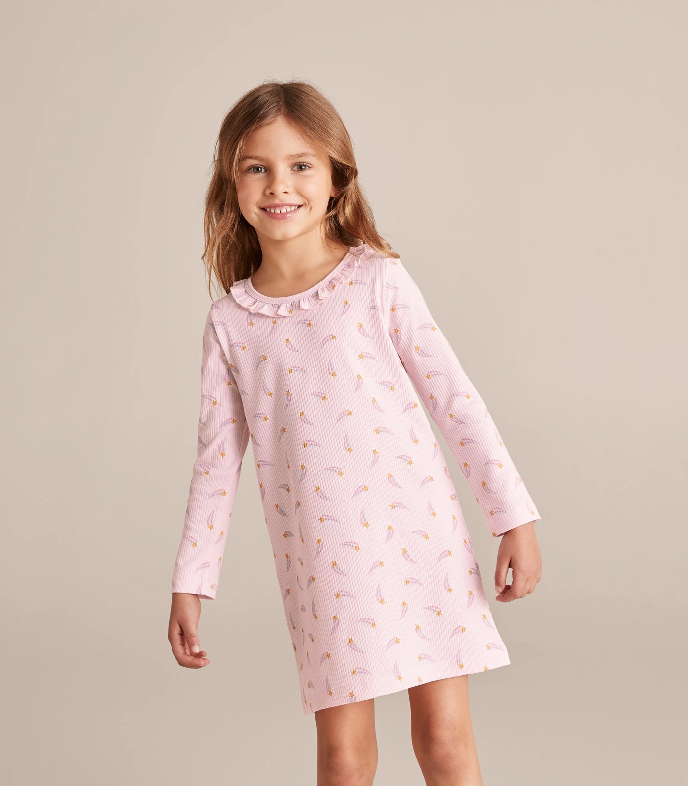 She'll sleep blissfully in the long sleeve Shooting Star Nightie featuring a cute frill neck design and great stretch rib for ultimate comfort all night long.