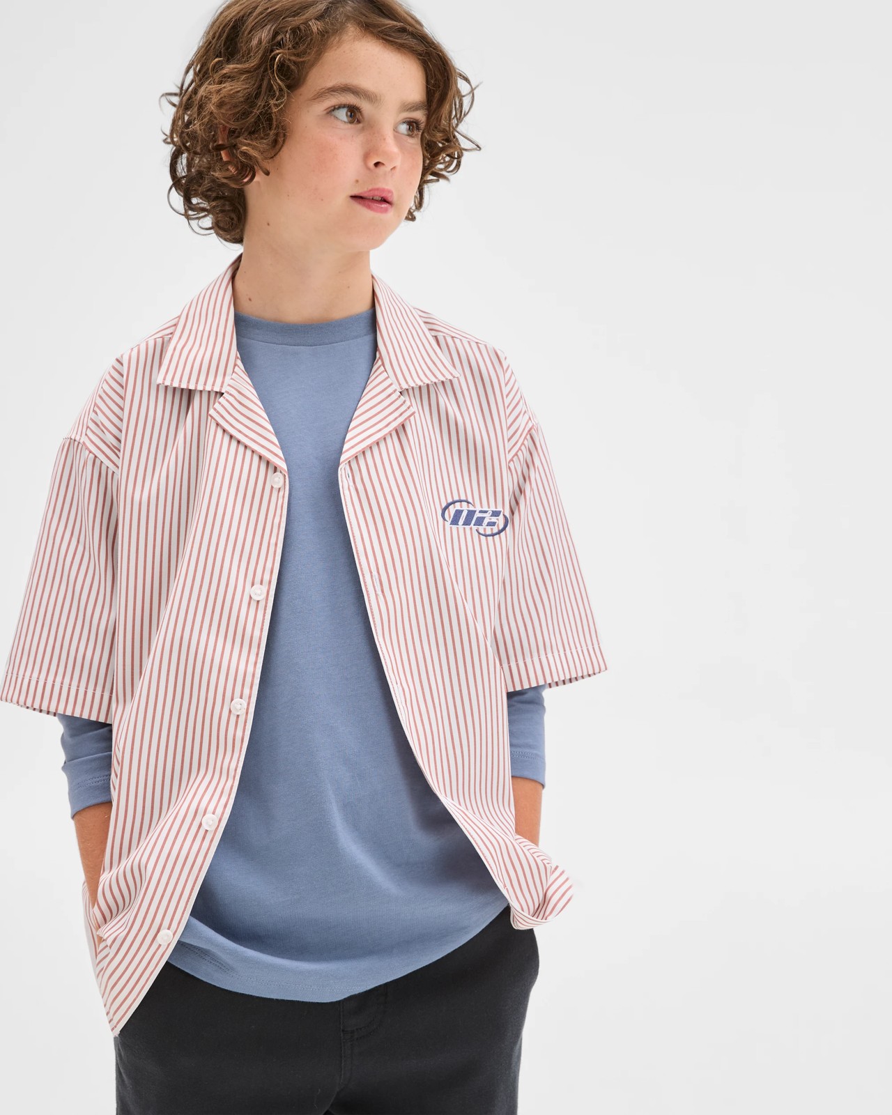 Short Sleeve Boxy Shirt and Long Sleeve T-Shirt Set - Stripe Rust