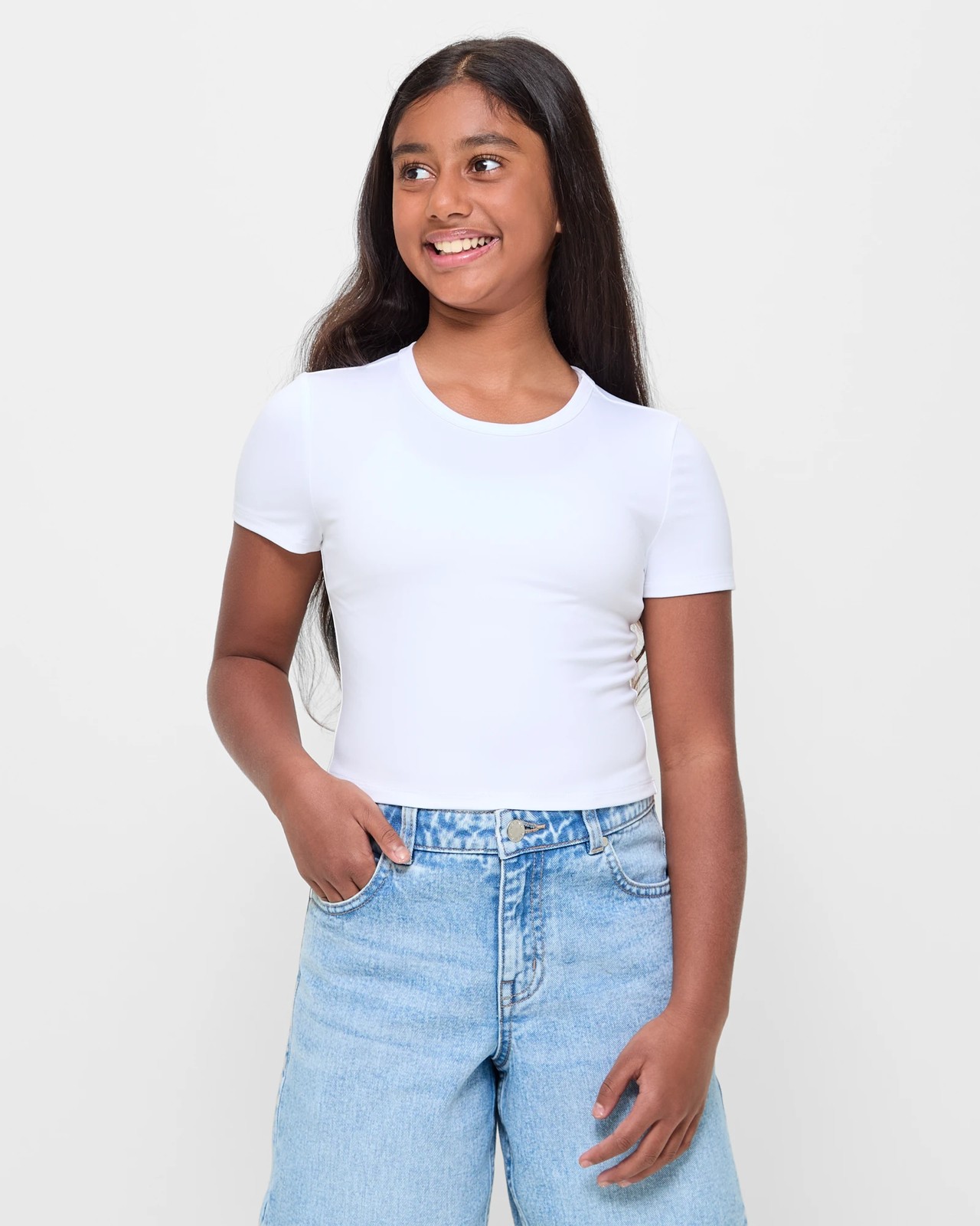 Introducing our Girls' T-shirt, thoughtfully created with recycled materials whilst keeping your little one looking stylish. With fantastic stretch capabilities, your girl will enjoy freedom of movement in a fitted and trendy design. The crew neck and short sleeves offer classic touches, and the straight hem ensures a clean and polished look. Available in a spectrum of colours, there's a perfect shade for every mood and outfit.