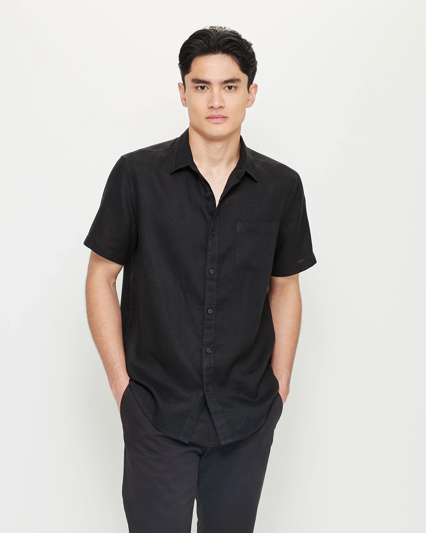 This stylish Short Sleeve Linen Shirt is the perfect go-to for any occasion. Crafted from a lightweight linen fabric, this shirt features a collared neckline, button down front and single chest pocket. The short sleeves and curved hemline provide a timeless fit while the back centre pleat adds an extra touch of style. From casual days to special occasions, this shirt will take you anywhere!