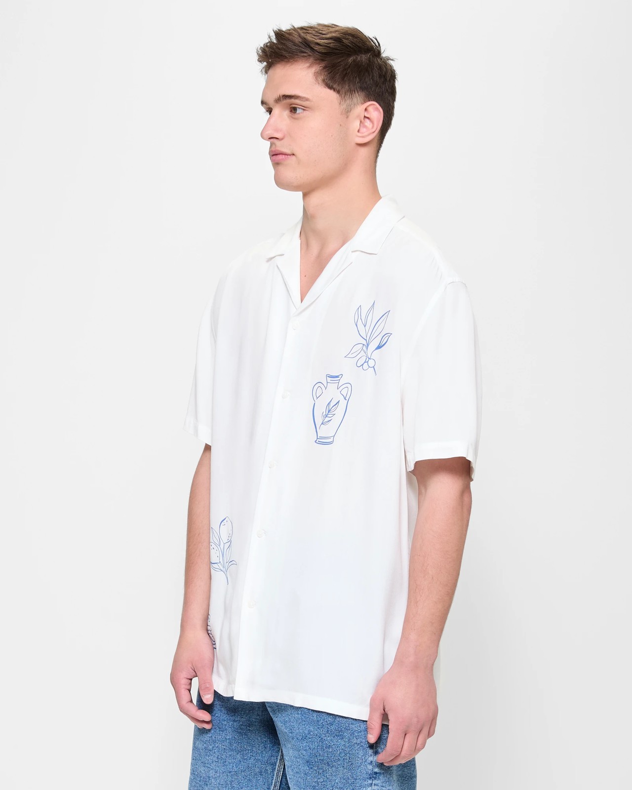 Experience ultimate comfort and style with our Commons short sleeve print shirt. Created from a lightweight and soft viscose material, the shirt offers a regular fit and features a round collared neckline with charming front lapels. The button-through front and back centre pleat provide ease of movement, making everyday wear a breeze. Elevate your wardrobe with the perfect combination of fashion and functionality.