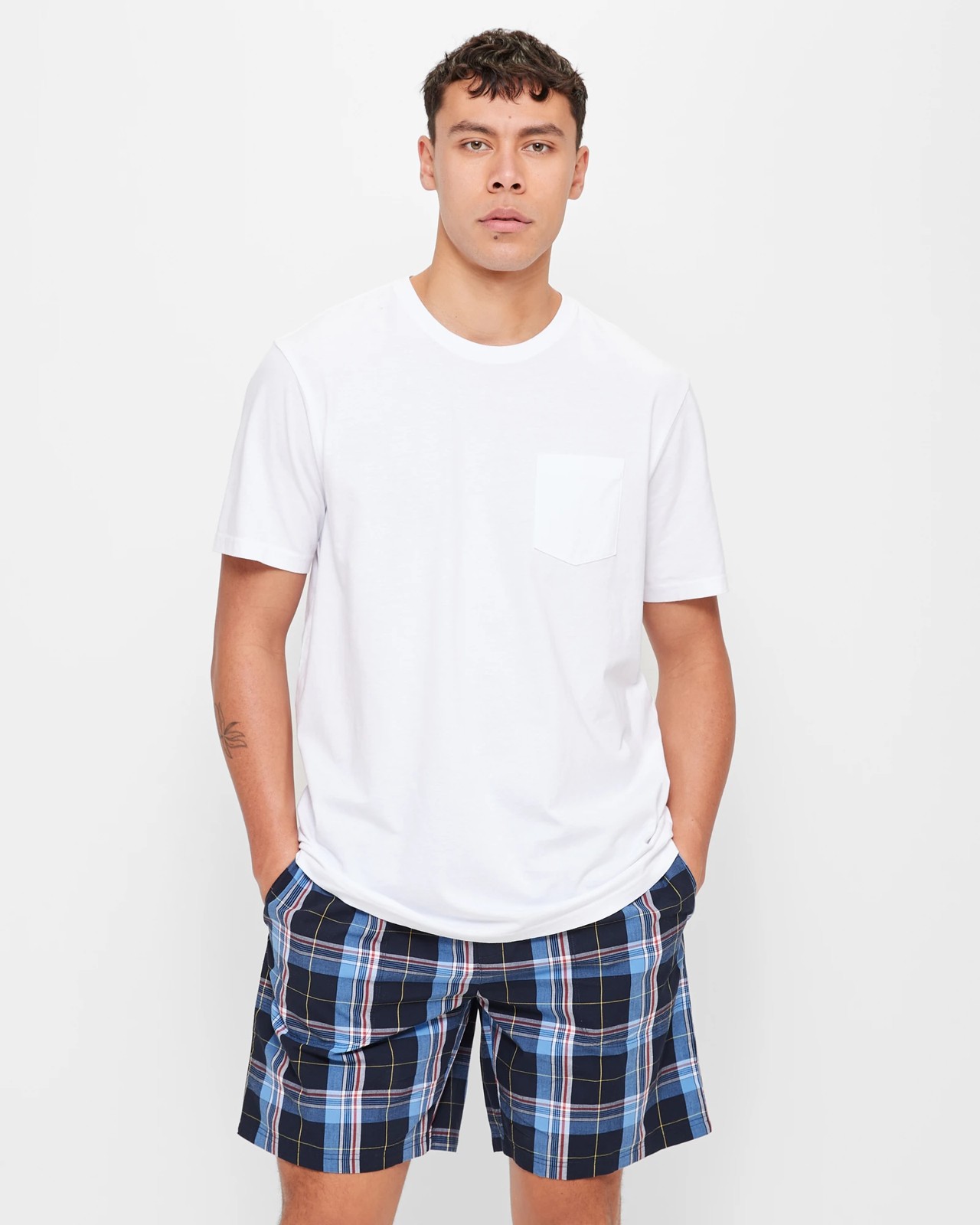 Welcome the warmer nights in style with our Men's Short Sleeve Pyjama Set. Crafted from a super-soft and breathable poplin cotton fabrication, this two-piece set will keep you comfortable all night long. The shirt features a round crew neckline, a white front chest pocket and short sleeves for an effortless look. The straight hemline adds an extra touch of detail to complete the look. Get ready to have sweet dreams in our Men's Short Sleeve Pyjama Set.