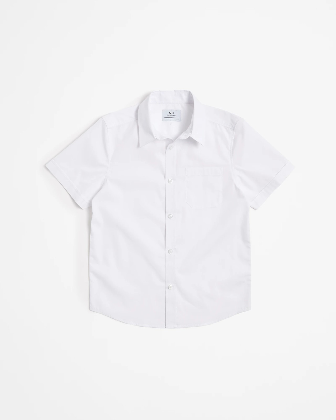 Prepare your child for school with our cosy and stylish short sleeve shirt. Perfect for busy school days, it features a classic button-down front and a practical sewn-in name tag to prevent mix-ups. The poly-cotton blend offers a soft and comfortable feel, making it great for daily use. With a smart chest pocket and curved hem, this shirt combines functionality with a polished look. Get yours now and let your child stand out!