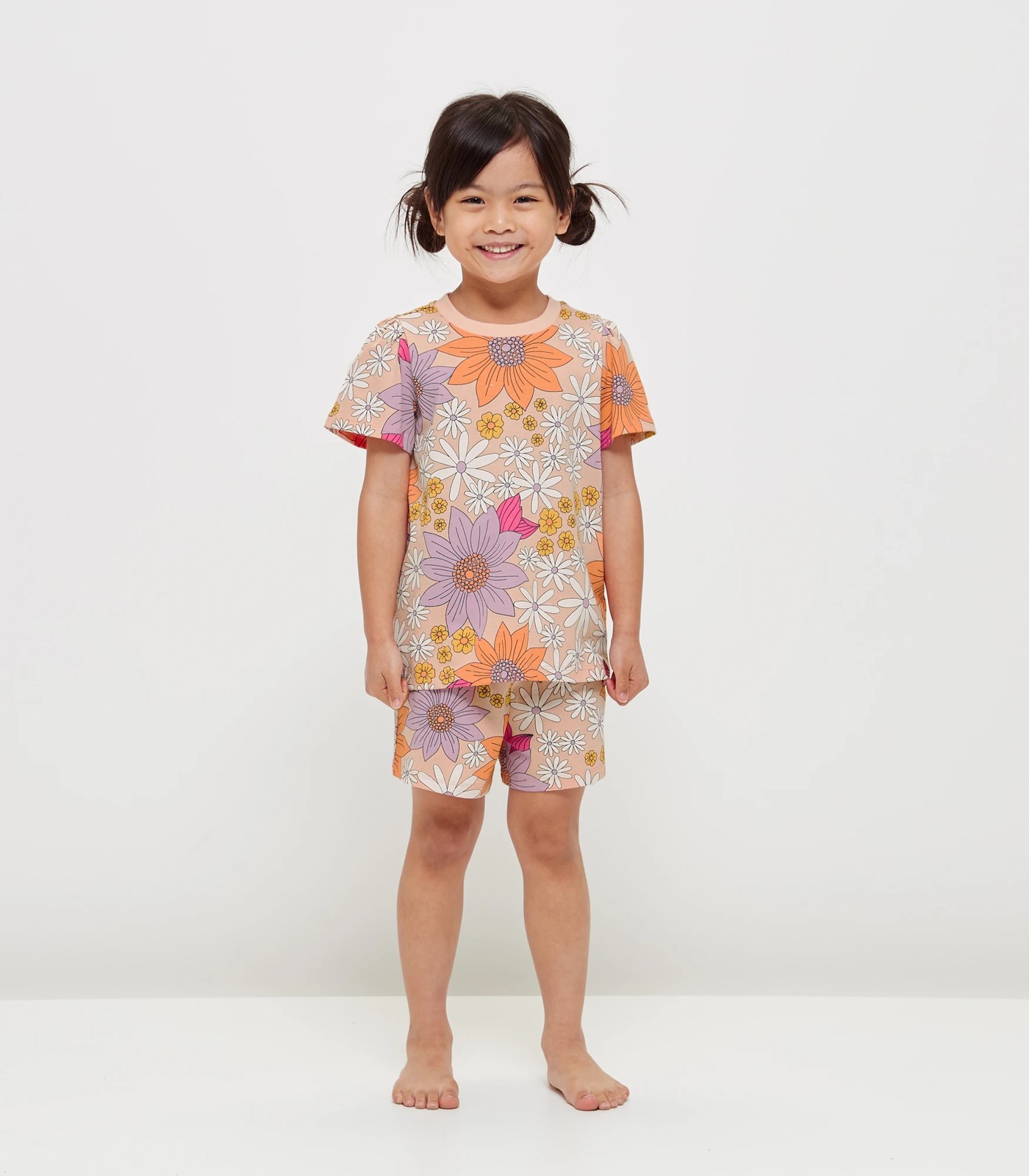 Introducing the perfect sleep set for kids! This two piece set is made of Cotton fabric and features an all-over orange floral print. The top has a crew neck, short sleeves and a straight hem, while the shorts come with an elastic waistband for extra comfort. And don’t forget about the matching sibling set available separately! With this Kids Sibling Matching Floral Cotton Pyjama Set, bedtime has never been so stylish!