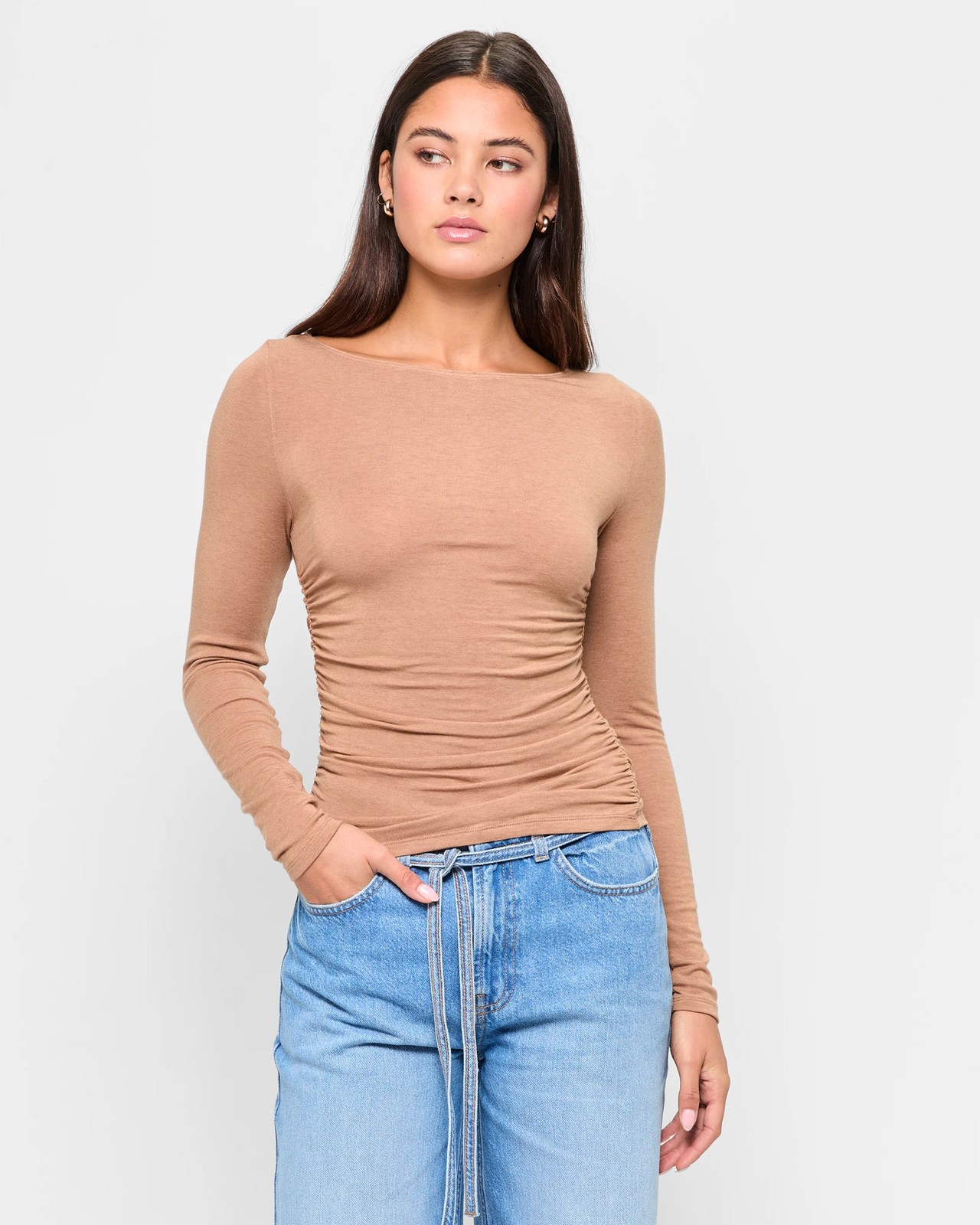 Discover the delightful blend of comfort and style with the Side Gathered Knit Top by Lily Loves. Made from a lyocell and wool mix, enhanced with stretch elastane, this top offers a slim fit and soft-touch feel. It features a rounded neckline, long sleeves, and unique gathered sides, finished with a curved hemline. Perfect for any event, this top is an essential piece for your wardrobe. Add a touch of charm to your outfit today!