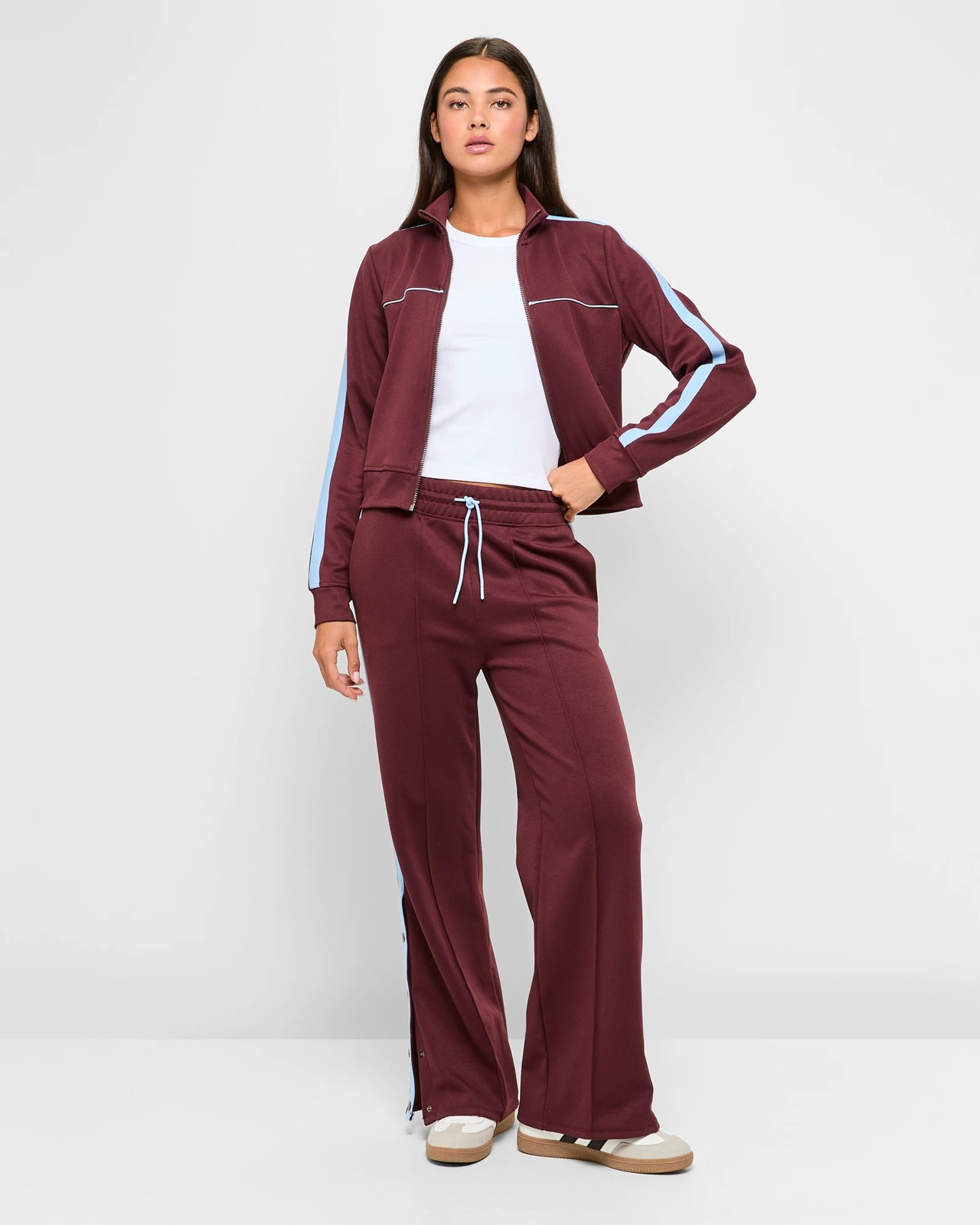 Contrasting colour thick stripe down side seams of legs
