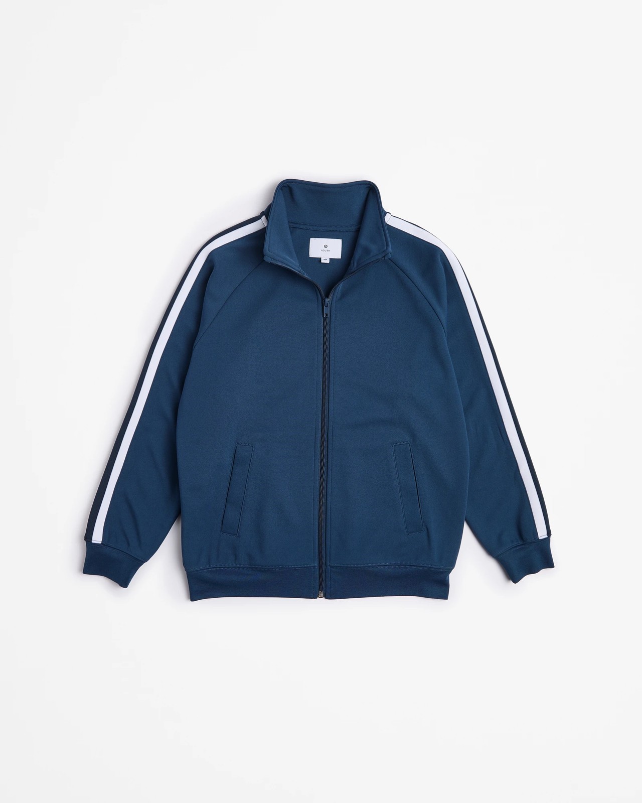Refresh your child's wardrobe with our chic Side Stripe Zip Jacket. In a versatile navy blue, this jacket offers a comfortable regular fit and a modern funnel neck. The full zip front ensures easy wear, while the long raglan sleeves with ribbed cuffs provide a snug fit. Bold side stripes bring a sporty vibe, and the front pockets with side entry are perfect for little hands. Team it with matching track pants, sold separately, for a complete look. This jacket is ideal for both play and casual outings, making it an essential addition to your child's collection. Grab one today and let them step out in style!