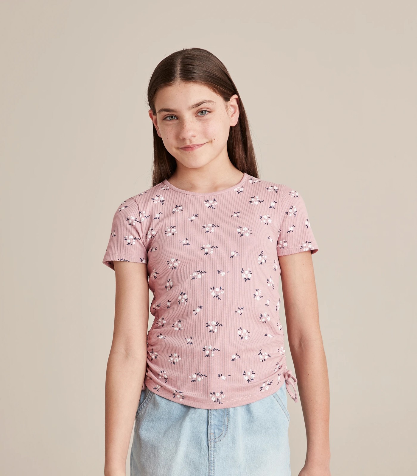 A great basic to have in her wardrobe comes the Side Tie Rib Knit T-shirt crafted from soft cotton for all day comfort, with a draw cord side tie to body and great stretch for the perfect fit.